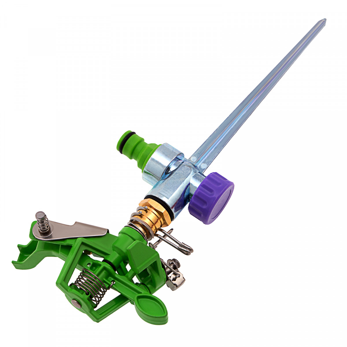 - Простая установка — распылитель надежно фиксируется в почве при помощи штыря-пики.