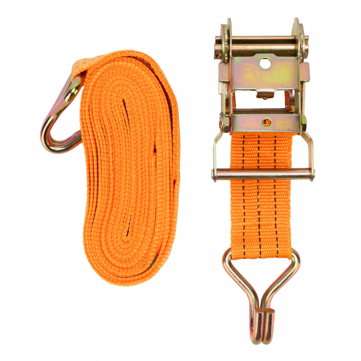 Багажный ремень с крюками Stels 54386 шириной 5 см и длиной 8 м, с храповым механизмом, предназначен для фиксации грузов на решетчатых конструкциях, например, открытых автомобильных багажниках, а также в прицепах. Пригодится для транспортировки различных предметов.