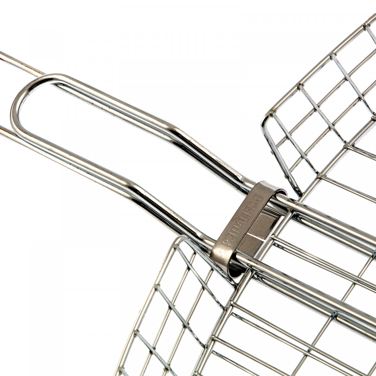 • За счет увеличенных опорных стержней решетка надежно фиксируется на мангале, а для жарки используется вся рабочая площадь.
