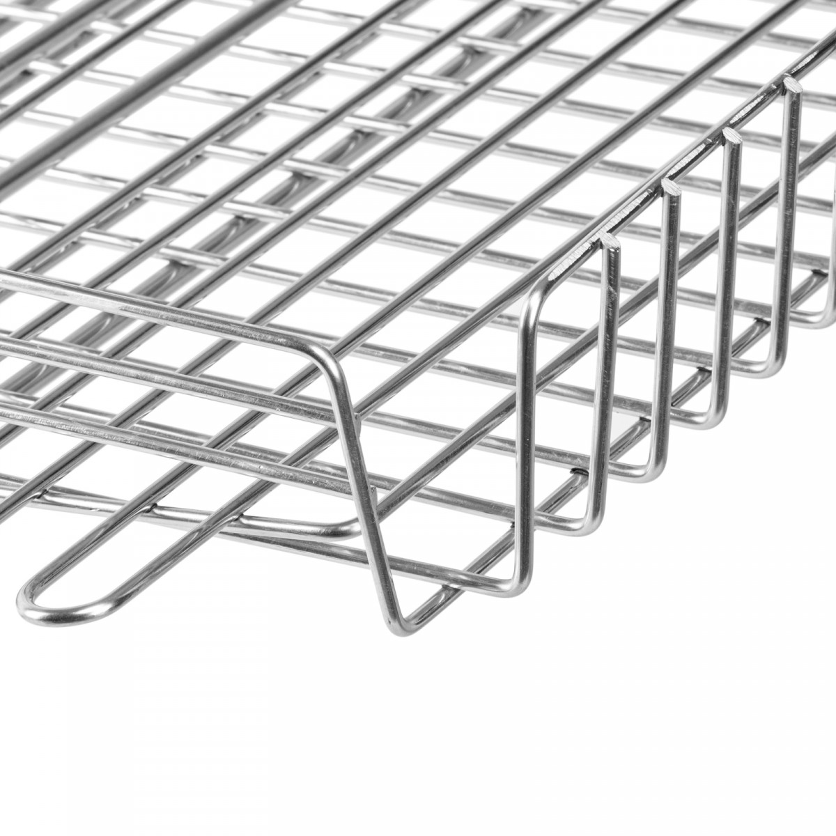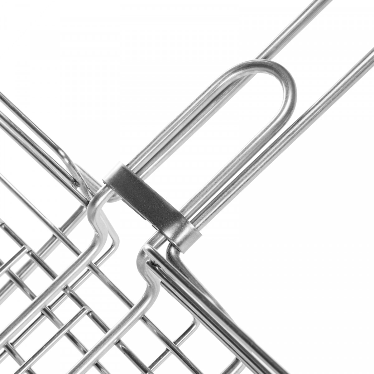 - Широкое кольцо-фиксатор — решетка не раскроется и продукты не выпадут во время переворачивания.