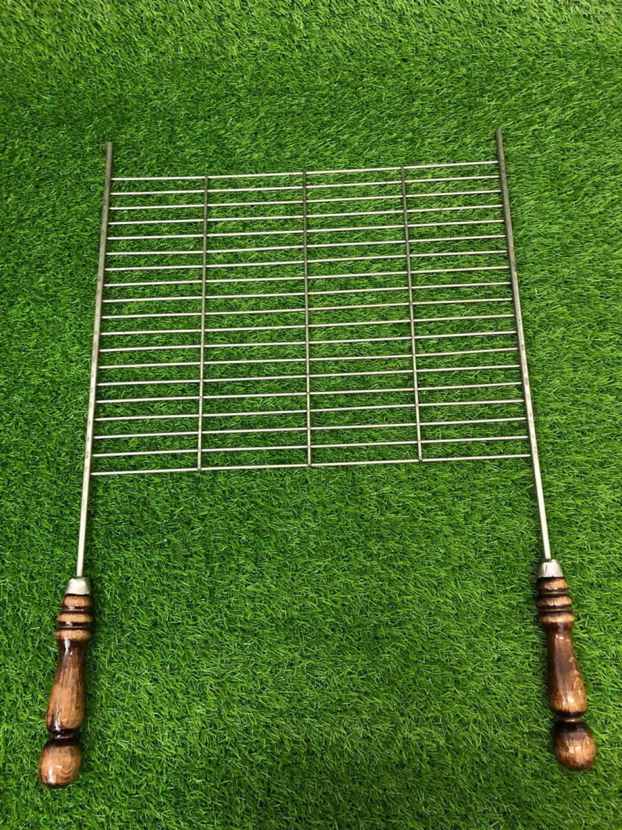 Сетка на мангал изготовлена из нержавеющей стали, с деревянными ручками. В отличии от чугунных решёток гриль сетки из нержавейки лёгкие и не дорогие. Для приготовления мяса, курицы, овощей, фруктов, грибов. Диаметр прутков 3 мм.Сделано в России. Материал: нержавеющая сталь AISI 430. дерево.Длина с ручкой 60 см,Ширина 40 см,Высота 1 см,Вес 700 гр.