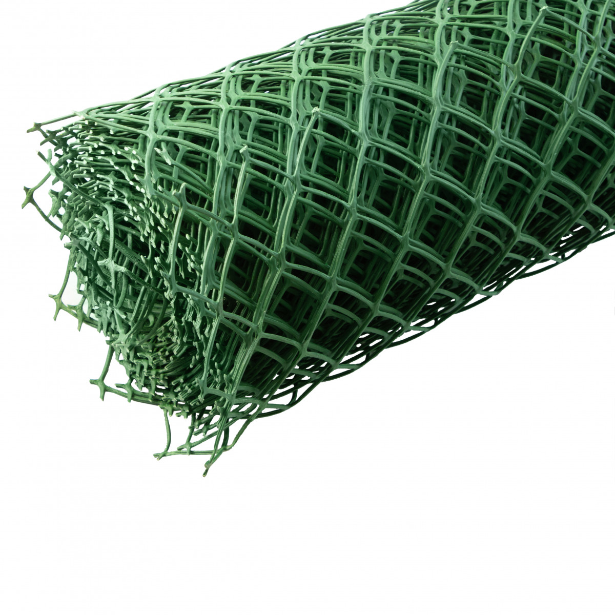 Зеленая пластиковая заборная решетка 64541, 1,8 х 25 м, в рулоне, с ромбовидными ячейками 90 х 100 мм, используется для создания изгороди. С ее помощью можно полностью оградить садовую и жилую территорию или зонировать отдельные участки. Возможно применение изделия в качестве каркаса для живой изгороди или элемента декора вместе с деревянными и каменными материалами. Также решетка пригодится для установки ограды на детских и спортивных площадках, создания вольеров для птиц и животных.