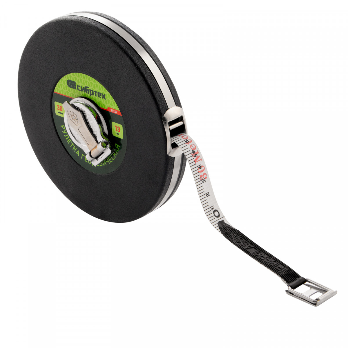 Рулетка геодезическая 30 м х 13 мм, закрытый корпус, фибергласовая лента Сибртех