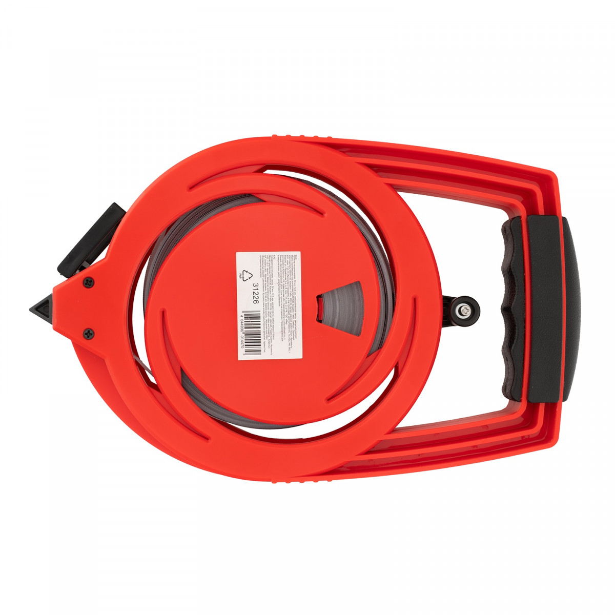 Геодезическая рулетка Matrix 31226 в закрытом корпусе, с металлической лентой размером 50 м х 12,5 мм, применяется для определения расстояний и размеров крупных объектов. Закрытый корпус из ABS-пластика защищает механизм от повреждений. Двухкомпонентная ручка-держатель обеспечивает надежный захват и облегчает работу с рулеткой. Инструмент используется для проведения замеров на открытой местности, дорогах, а также для выполнения ландшафтных работ и картографических обследований.