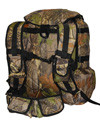 Рюкзак охотничий объемом 80 л имеет: фиксированный клапан, во всю величину клапана карман на молнии; ручка для переноски; спинка дублирована пенополиэтиленом; анатомические S-образные лямки и грудная стяжка, на каждой лямке находится карман с клапаном на два патрона; разъемный анатомический пояс, для более удобной фиксации рюкзака; на поясе находятся два патронташа, каждый на четыре патрона; два боковых кармана на резинке и один большой карман с клапаном на молнии; две боковые стяжки