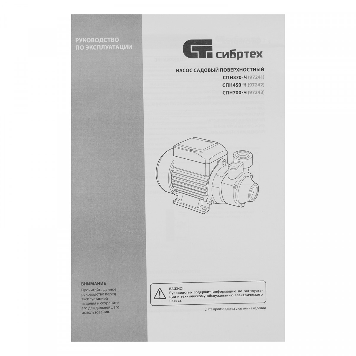 Садовый поверхностный насос СПН700-Ч, 700 Вт, напор 50 м, 3000 л/ч, чугун Сибртех
