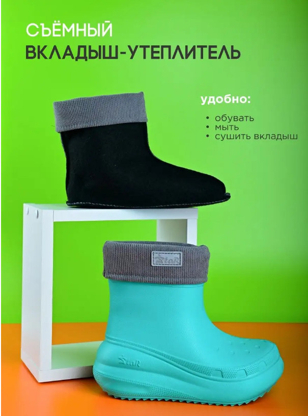 Обувь демисезонная сапоги для женщин и подростков АДЕЛЬ из ЭВА до -10С мороза. Размер сапог подходит так же и женским ножкам. Универсальная модель сапог АДЕЛЬ ПОДРОСТОК сочетает в себе свойства резиновых и теплых зимних сапог. Сапожки резиновые сделаны из водонепроницаемого и термостойкого материала ЭВА. Со вкладышем сапоги из пенки можно носить при t -10C. Отворот вкладыша-утеплителя фиксирует его, благодаря чему удобно надевать сапоги, утеплитель не сминается. апожки из пенки отличаются необычайной легкостью и стойкостью к холоду. Практичная и теплая обувь для женщин подходят не только для пребывания на природе, но и для городских условий. Прогулки с коляской, работа на открытом воздухе, требующая длительного нахождения в неподвижном положении, выгул собаки станут значительно комфортнее, если ноги будут в тепле