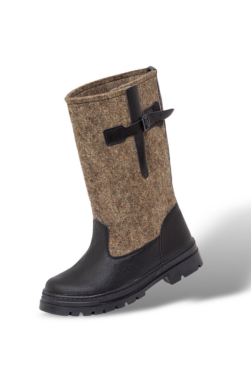 Особенности модели: ремешок для регулировки объема голенища надежно фиксирует сапог на ноге.Верх: комбинированный, союзка выполнена из натуральной кожи (юфть), голенище изготовлено из натуральной шерсти (100% войлок).