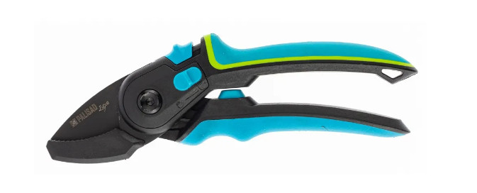 Секатор с наковальней Palisad LUXE 604805 длиной 220 мм, с регулировкой захвата и трехкомпонентными рукоятками, предназначен для обрезки сухих и увядших веток толщиной до 24 мм. Лезвие с тефлоновым покрытием и прецизионной заточкой отсекает ветку быстро и максимально щадяще для растения. Увеличенный шарнир, усиливающий сжатие на 10%, экономит силы пользователя во время длительной работы. Плотность примыкания лезвий можно отрегулировать вращением винта. Инструмент будет полезен для ухода за растениями на даче и в саду.