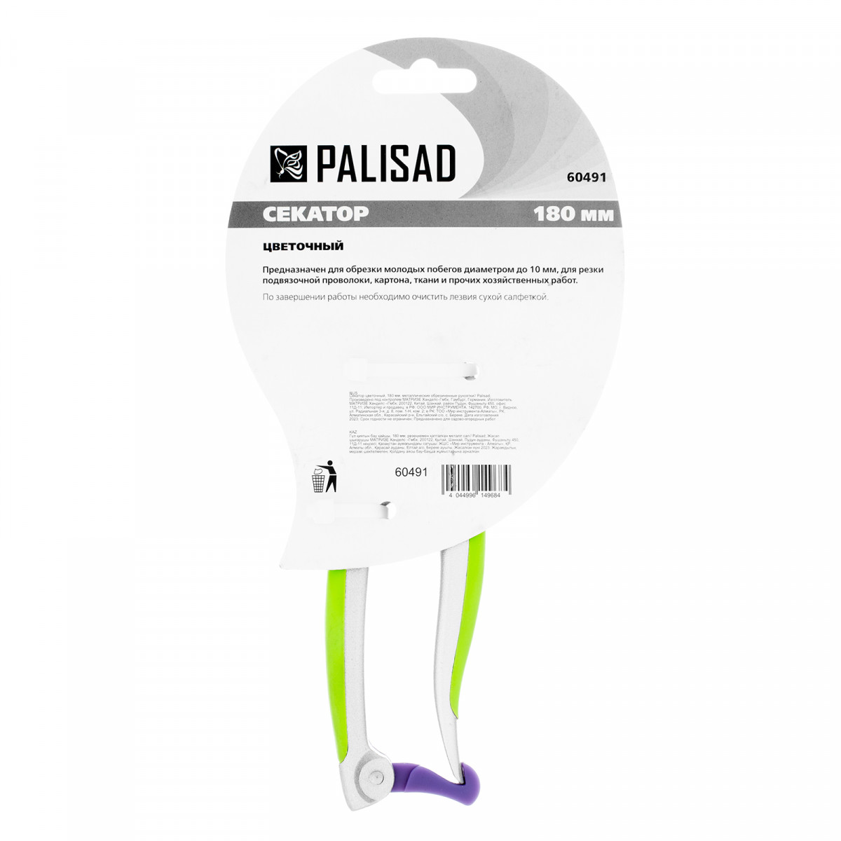 Цветочный секатор Palisad 60491 длиной 180 мм, с металлическими обрезиненными рукоятками, будет полезен дома, на даче, в саду и огороде. При помощи расположенных в параллельных плоскостях лезвий быстро и аккуратно срезает молодые побеги и стебли толщиной до 10 мм. Подходит для оформления крон бонсай и создания топиариев. Пригодится также в домашнем хозяйстве — им удобно резать картон, бумагу, ткань, подвязочный материал. Режущие кромки с прецизионной заточкой обеспечивают легкость реза, плотность смыкания лезвий регулируется при помощи крепежного винта.