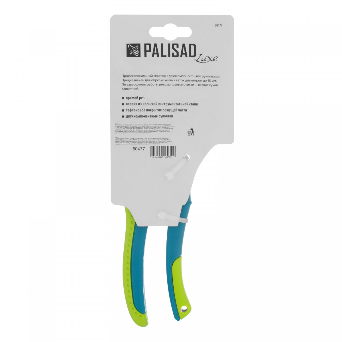Секатор прямого реза Palisad LUXE 60477 длиной 215 мм, с двухкомпонентными рукоятками, — инструмент для обрезки живых веток диаметром до 18 мм. Рез получается ровным и чистым, поскольку лезвия перемещаются в параллельных плоскостях. При этом вред растению наносится незначительный. Рабочие части выполнены из высококачественной японской инструментальной стали SK-5 и характеризуются максимальной твердостью и износостойкостью. Двухкомпонентные рукоятки из полипропилена не боятся ультрафиолета, поэтому секатор прослужит долго. Инструмент будет полезен для ухода за растительностью на даче и в саду.