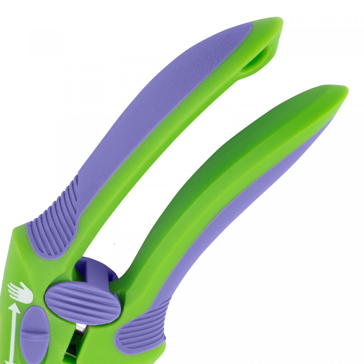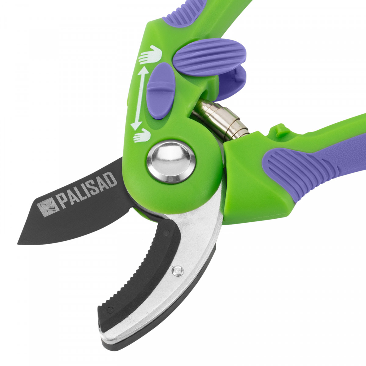 - Регулировка величины захвата — переключатель «большая-малая рука» позволяет устанавливать ширину раскрытия лезвий.