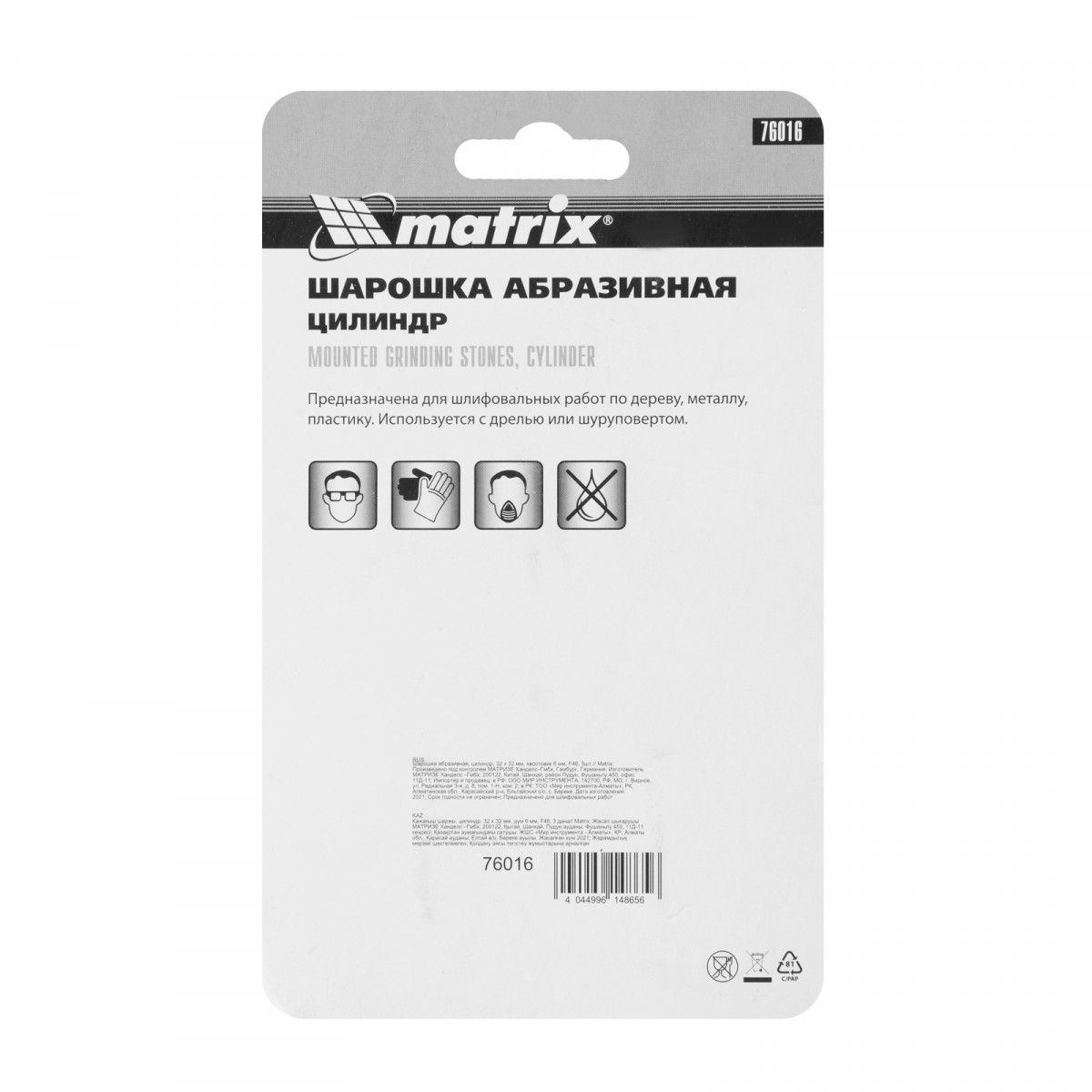 Шарошка абразивная Matrix 76016, 32 х 32 мм, с хвостовиком диаметром 6 мм, 3шт., имеет форму цилиндра и покрыта крупнозернистым абразивом F46. Предназначена для очистки прямолинейных поверхностей, расширения отверстий, снятия фасок и удаления заусенцев. Она используется в качестве оснастки на дрелях, шуруповертах, а также ПШМ при выполнении отделочных и декоративных работ.