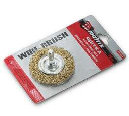 Щетка изготовлена из стальной проволоки. Латунное покрытие препятствует появлению ржавчины во время работы по мокрым поверхностям. Применяется для очистки различных поверхностей от ржавчины, грязи, краски в щадящем режиме. Используется с дрелью.
