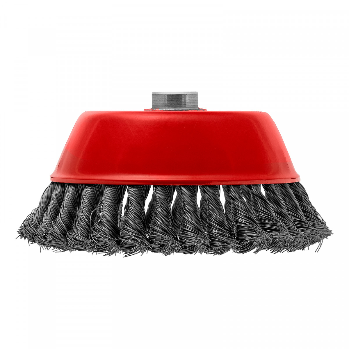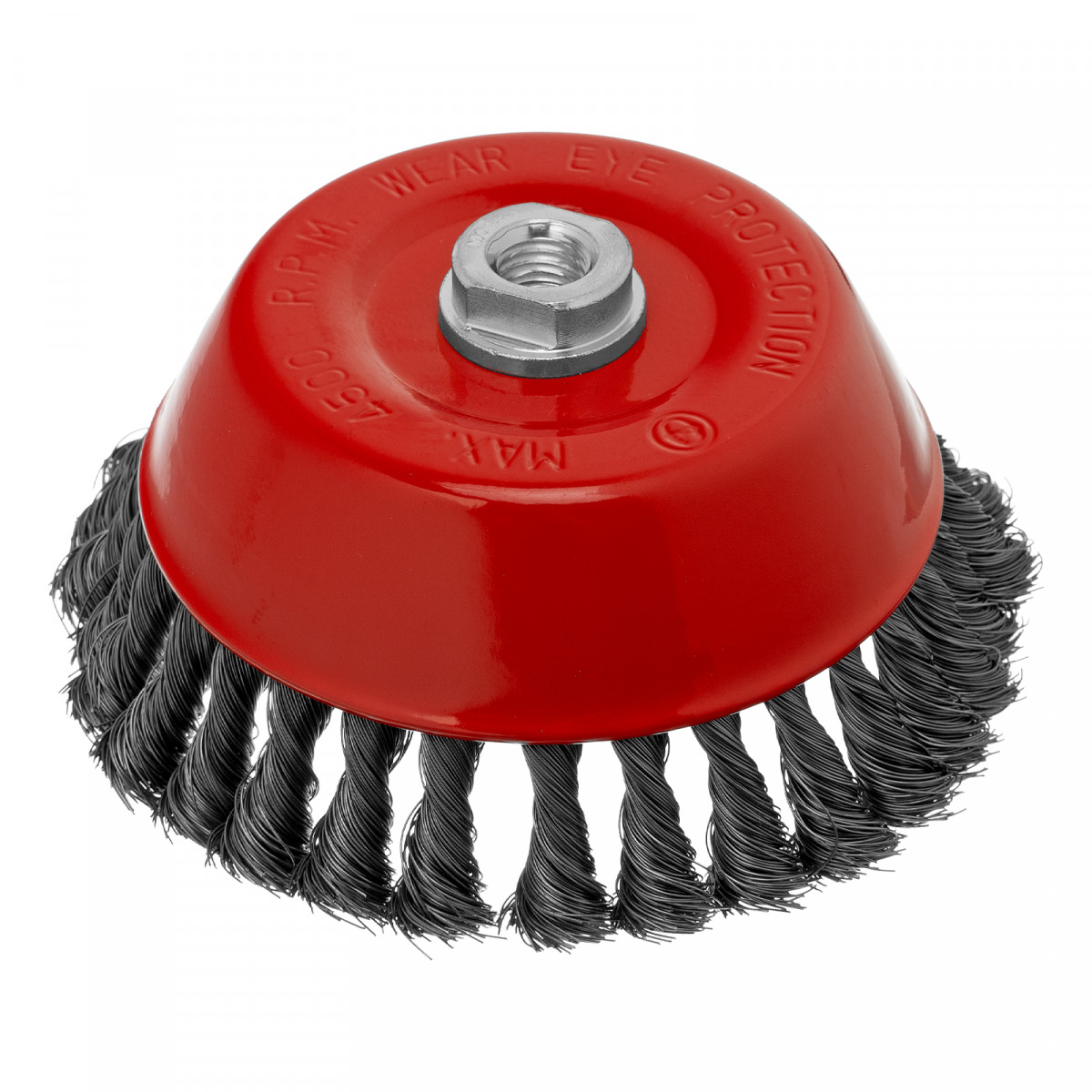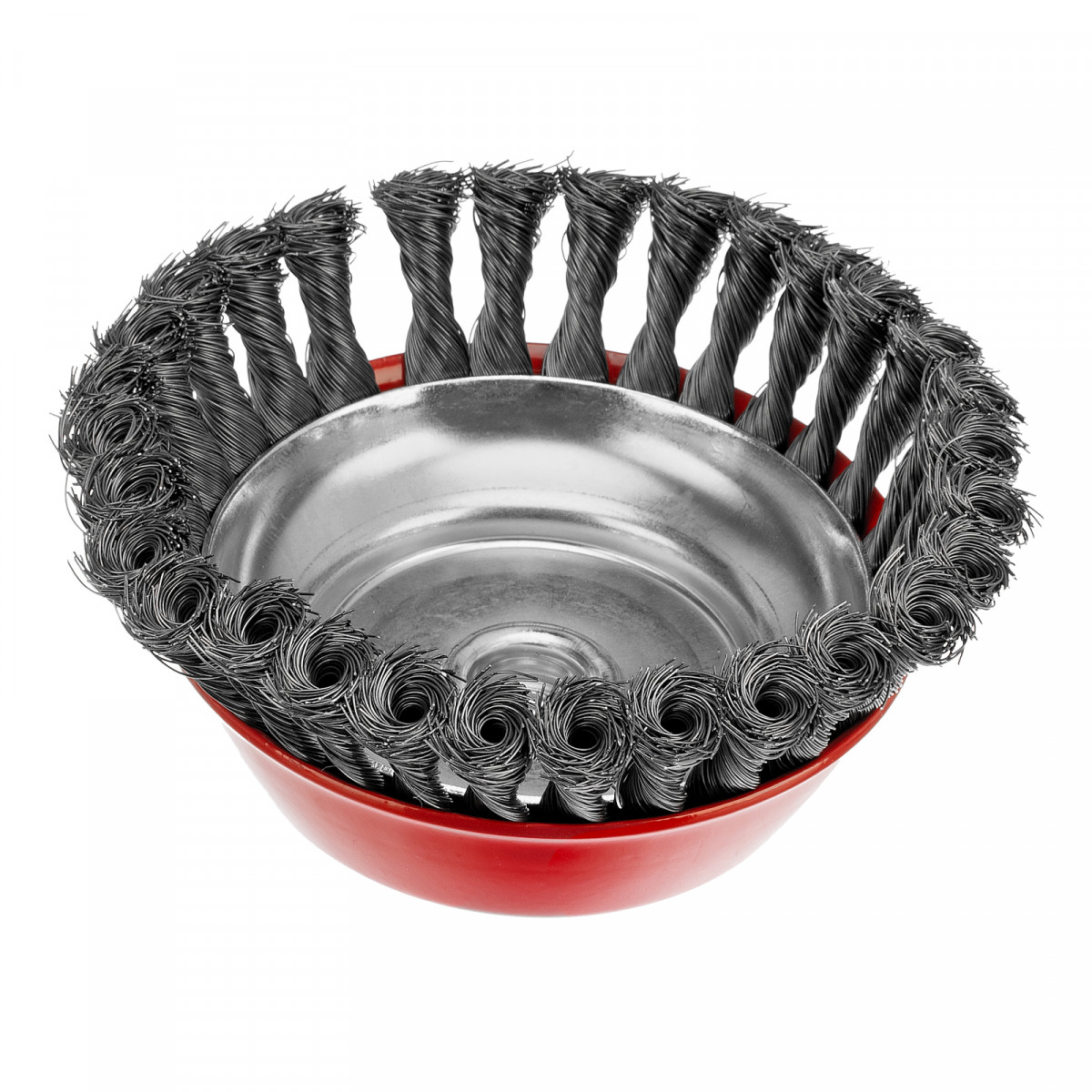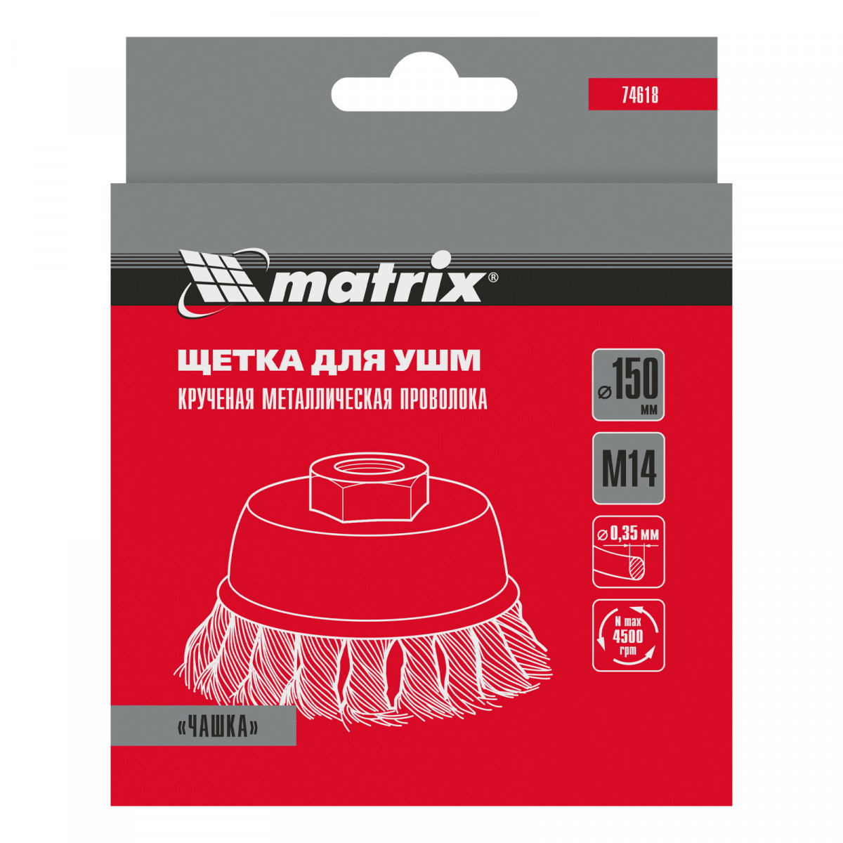 Щетка Matrix «Чашка» 74618 диаметром 150 мм, с присоединительной резьбой М14, с щетиной из крученой проволоки диаметром 0,35 мм, устанавливается на УШМ, поддерживающую работу со скоростью 4500 об/мин. Щетина предназначена для грубой (черновой) обработки поверхностей, менее агрессивной по сравнению с щетиной 0,5 мм. Изделие подходит для удаления загрязнений, снятия толстого слоя ржавчины, ЛКМ, зачистки сварных швов.