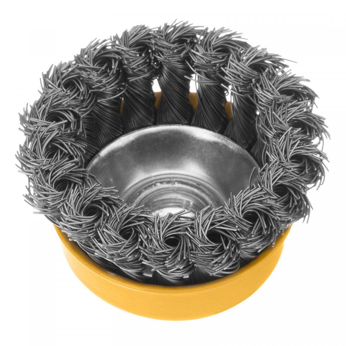 Щетка для УШМ, 75 мм, "Чашка", крученая нержавеющая проволока 0.5 мм, М14 Denzel