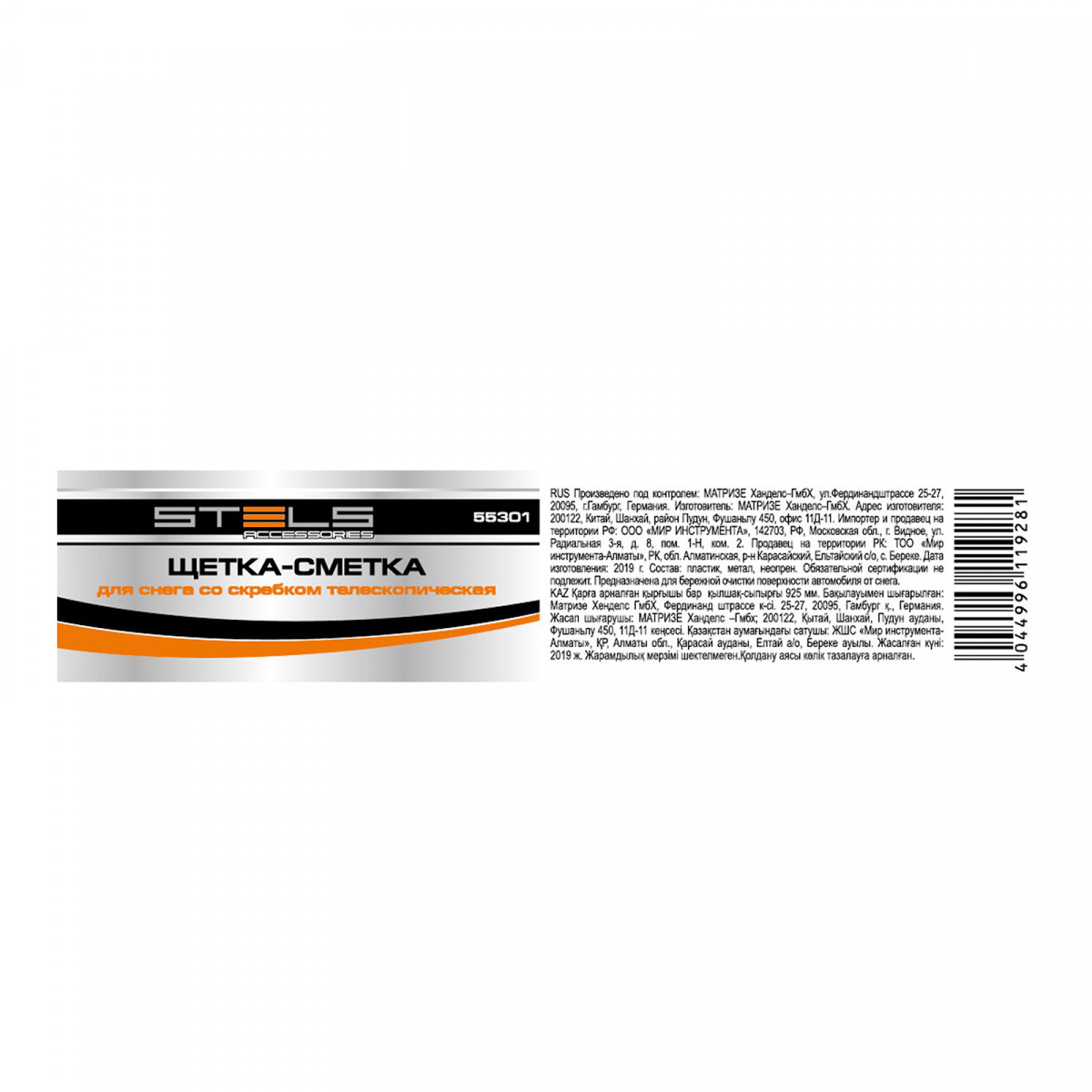 Телескопическая щетка-сметка для снега со скребком Stels 55301, длину которой можно увеличить с 900 до 1300 мм, помогает быстро очистить автомобиль от снега и наледи. Раздвижная рукоятка облегчает чистку капота и крыши. Щетка будет полезна автолюбителям.