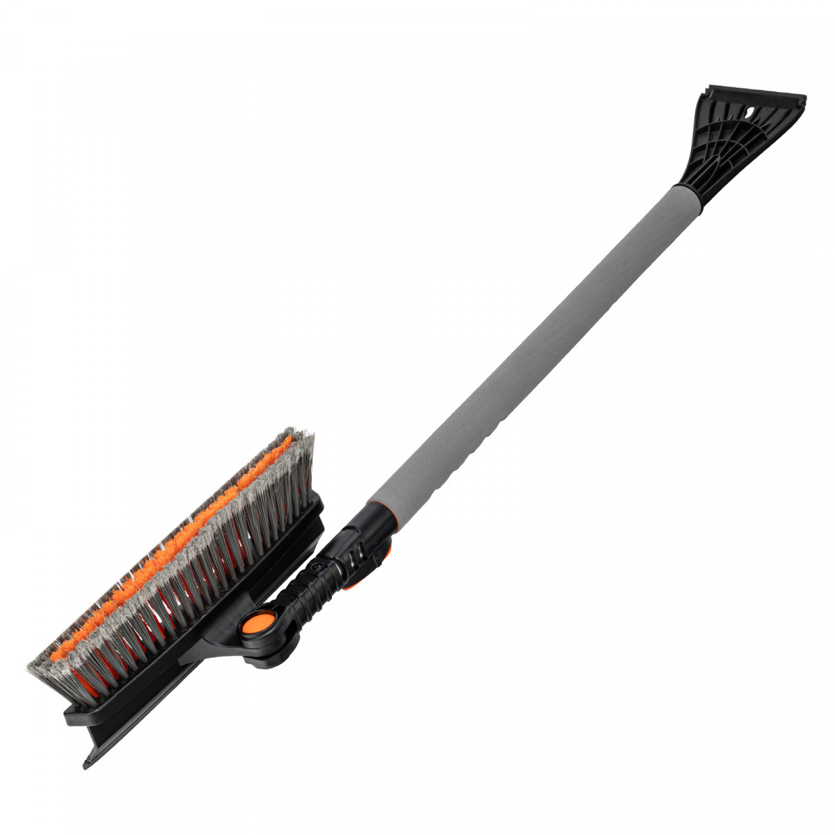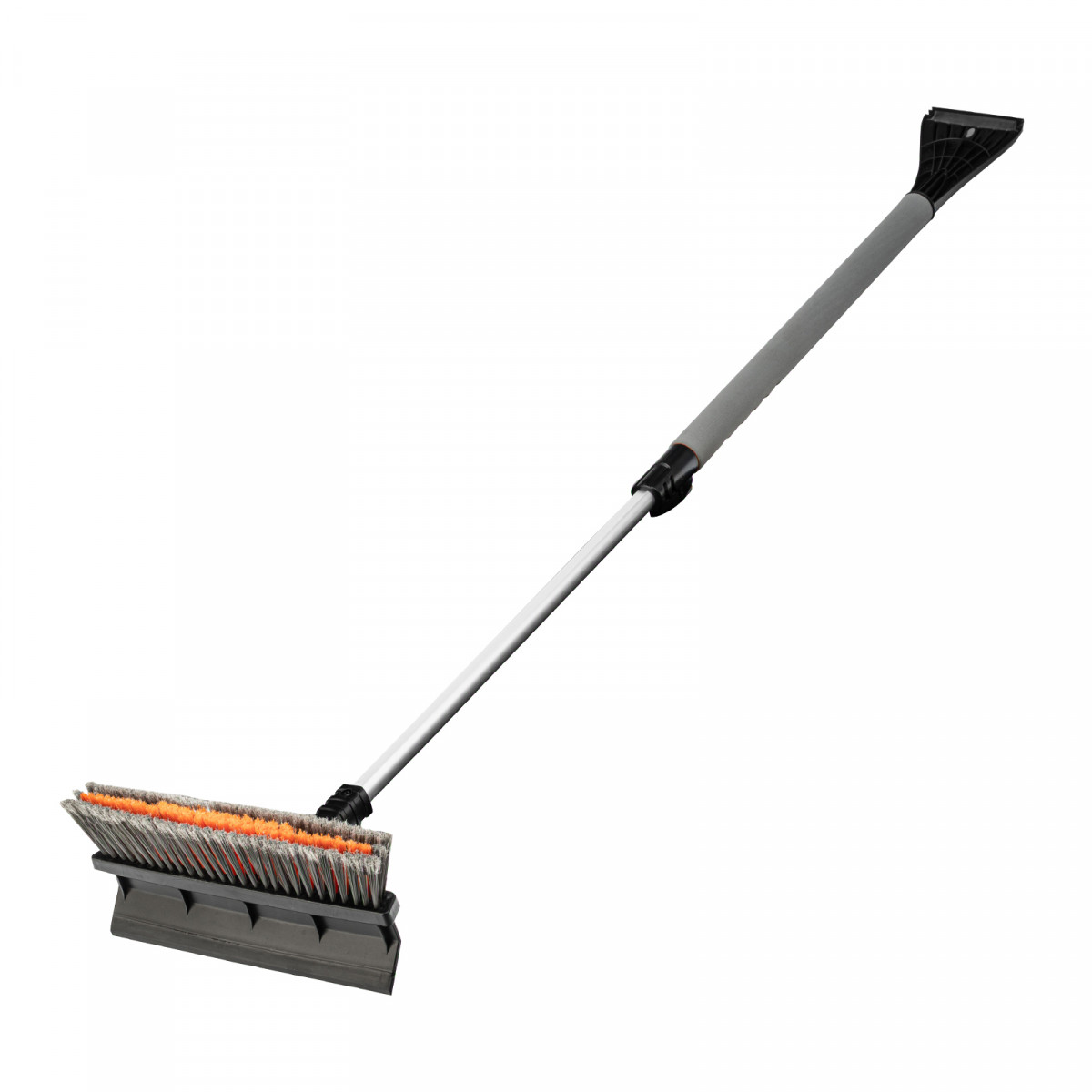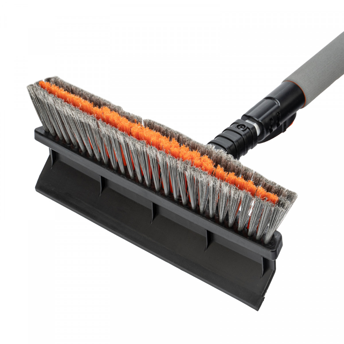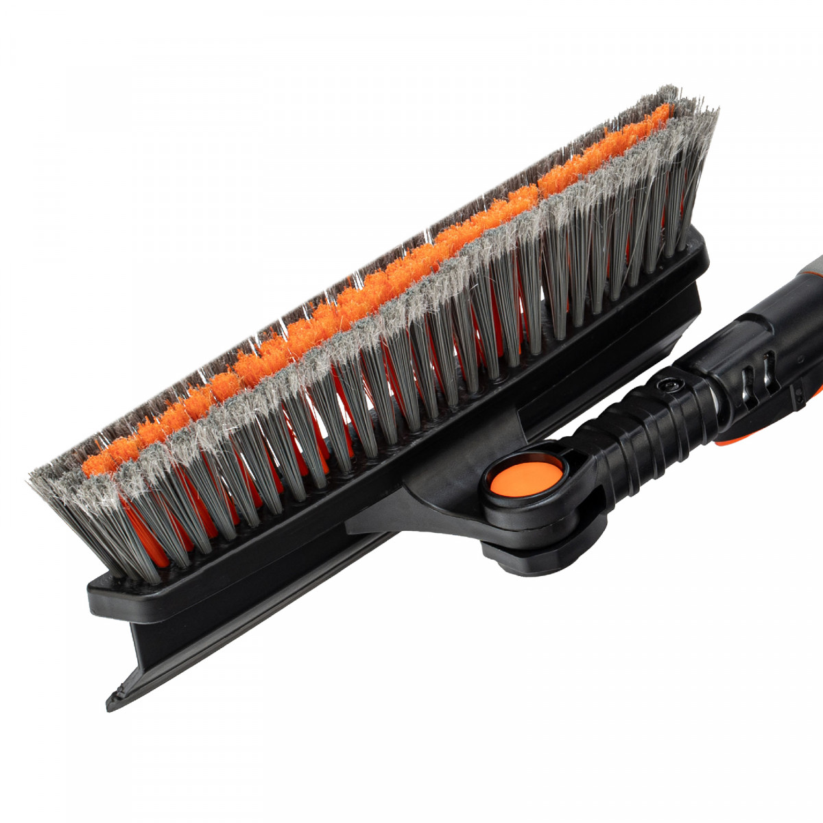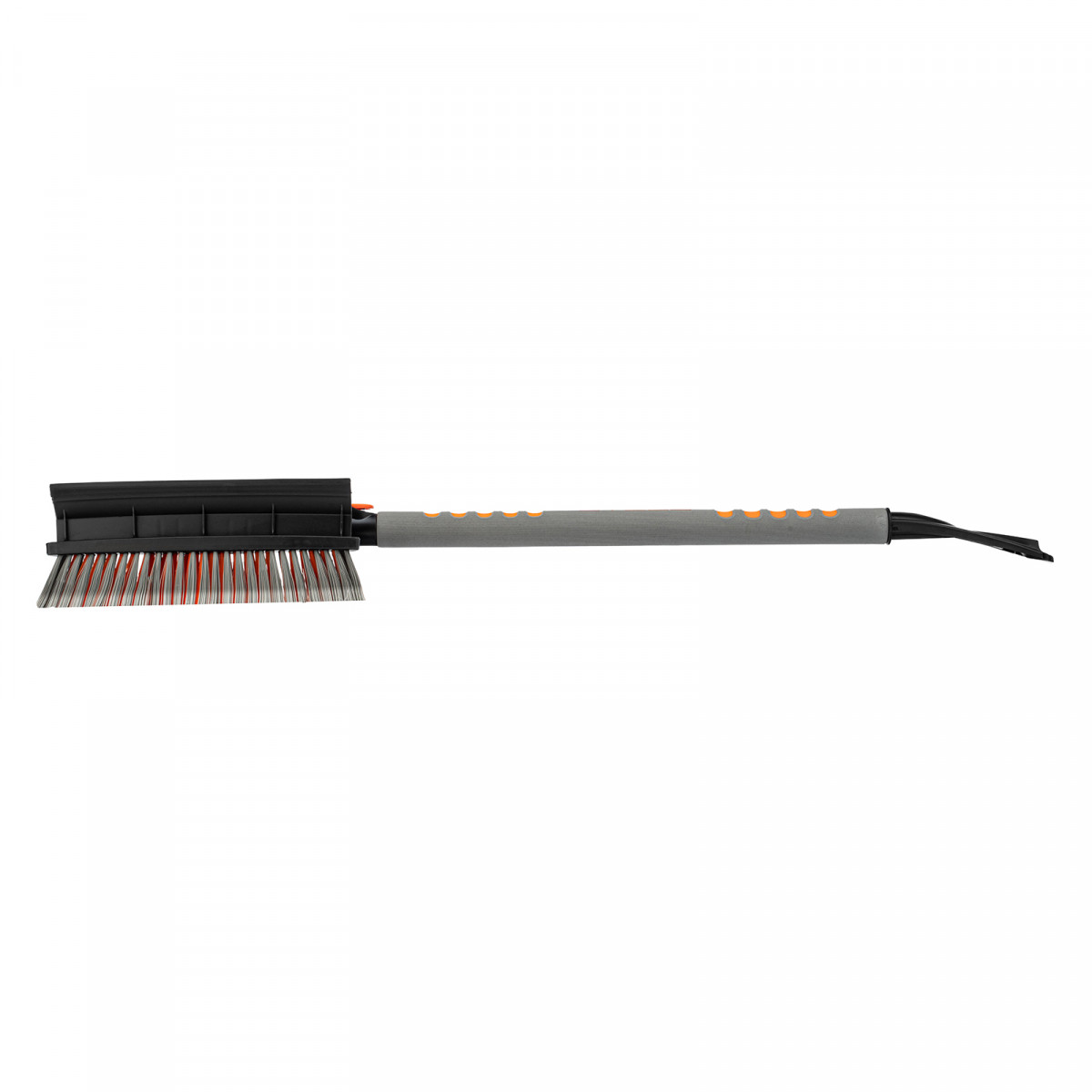 • Щетка-скребок имеет плотную щетину, распушенную на концах, поэтому эффективно убирает слой снега, не царапая поверхность кузова.