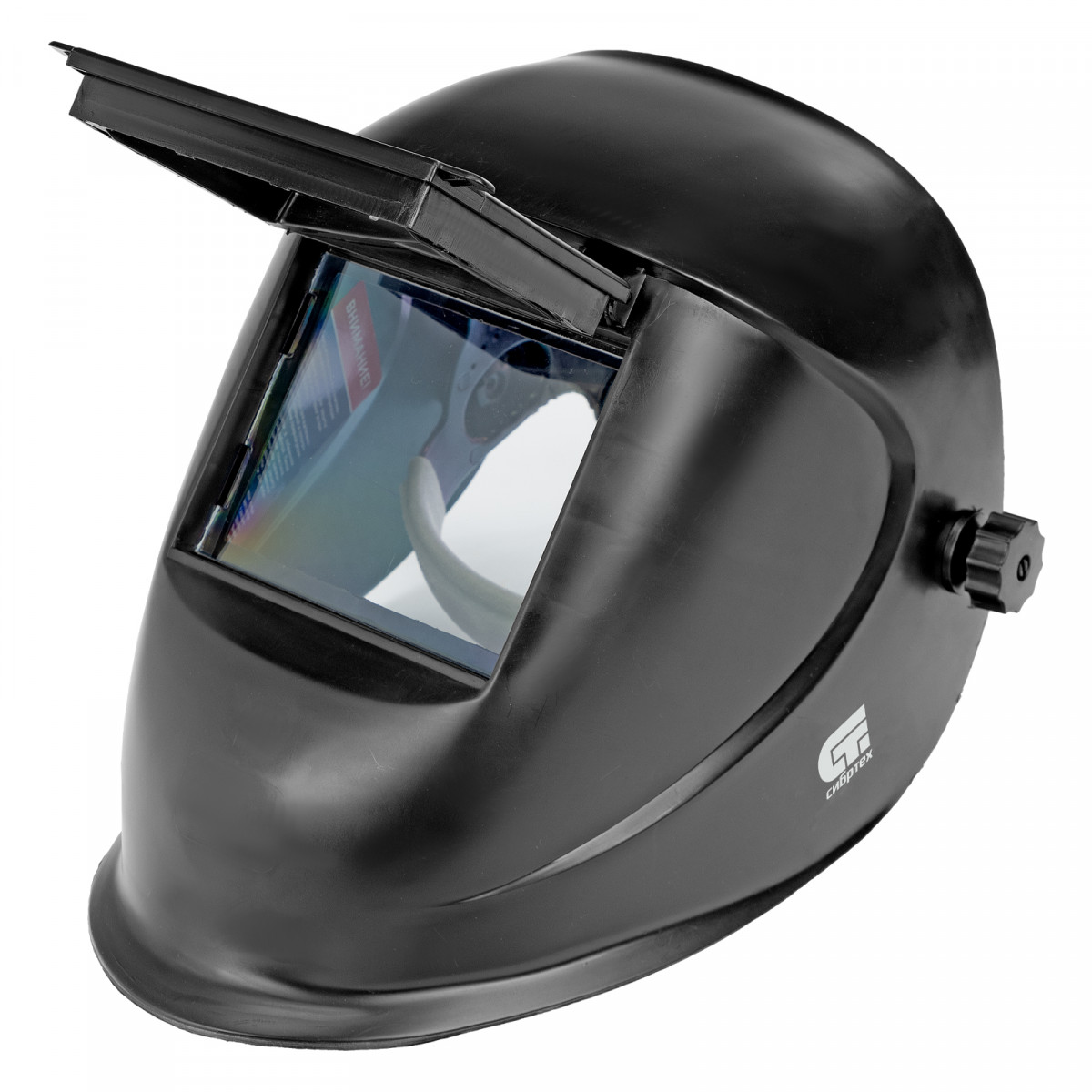 - Откидной блок — можно осмотреть рабочую зону или отбить шлак, не снимая маску.