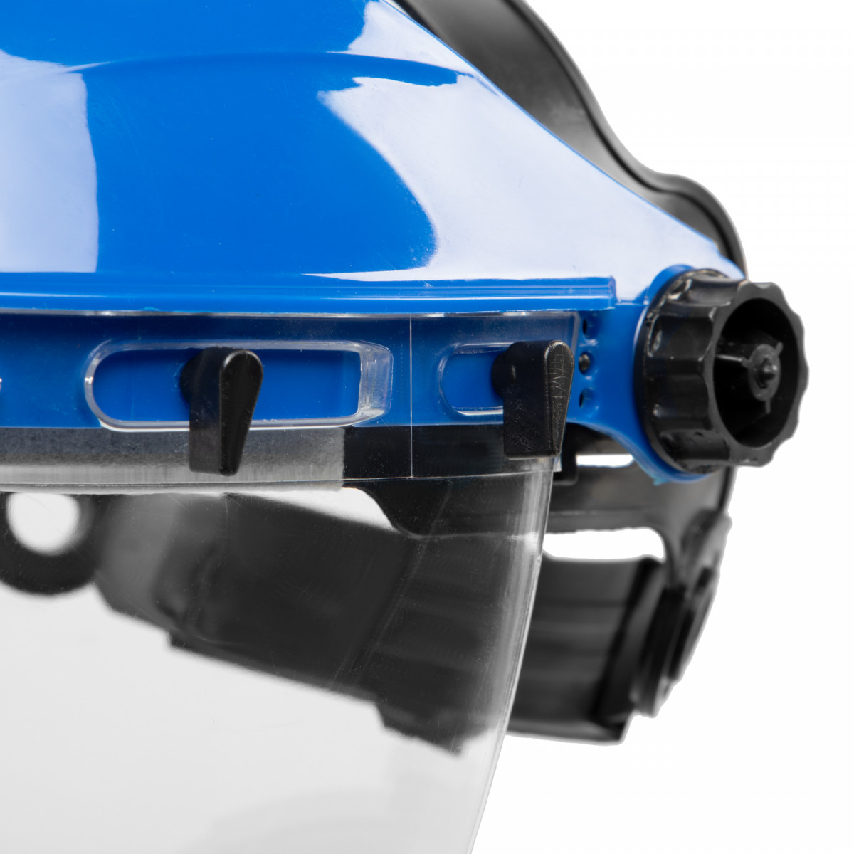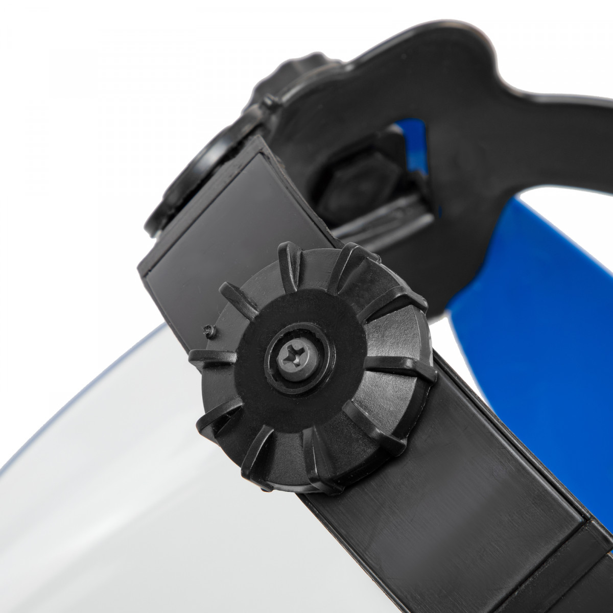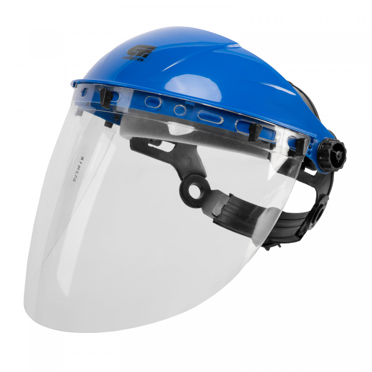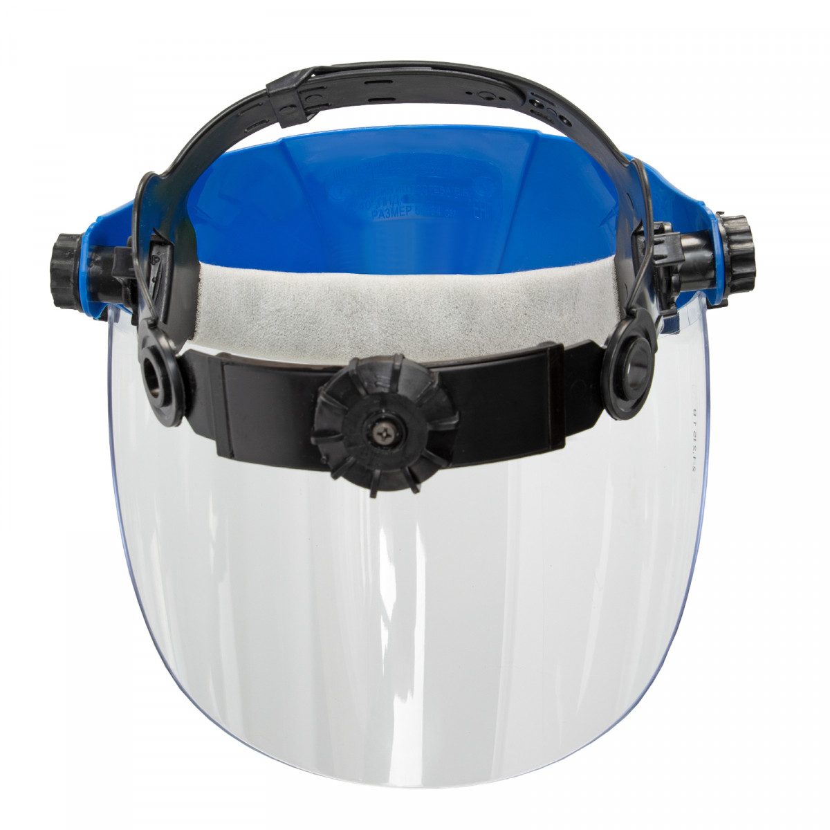 Защитный щиток Сибртех 89124 типа НБТ, размером 400 х 220 мм, из оптически прозрачного поликарбоната, имеет увеличенный экран и закрывает лицо рабочего, предохраняя его от искр, брызг неразъедающих жидкостей, а также твердых летящих частиц с высокой кинетической энергией до 14,9 Дж. Прозрачный экран, мягкий налобный обтюратор и регулируемое оголовье обеспечивают комфорт во время длительного ношения. Изделие используется во время строительных, токарных, слесарных работ.