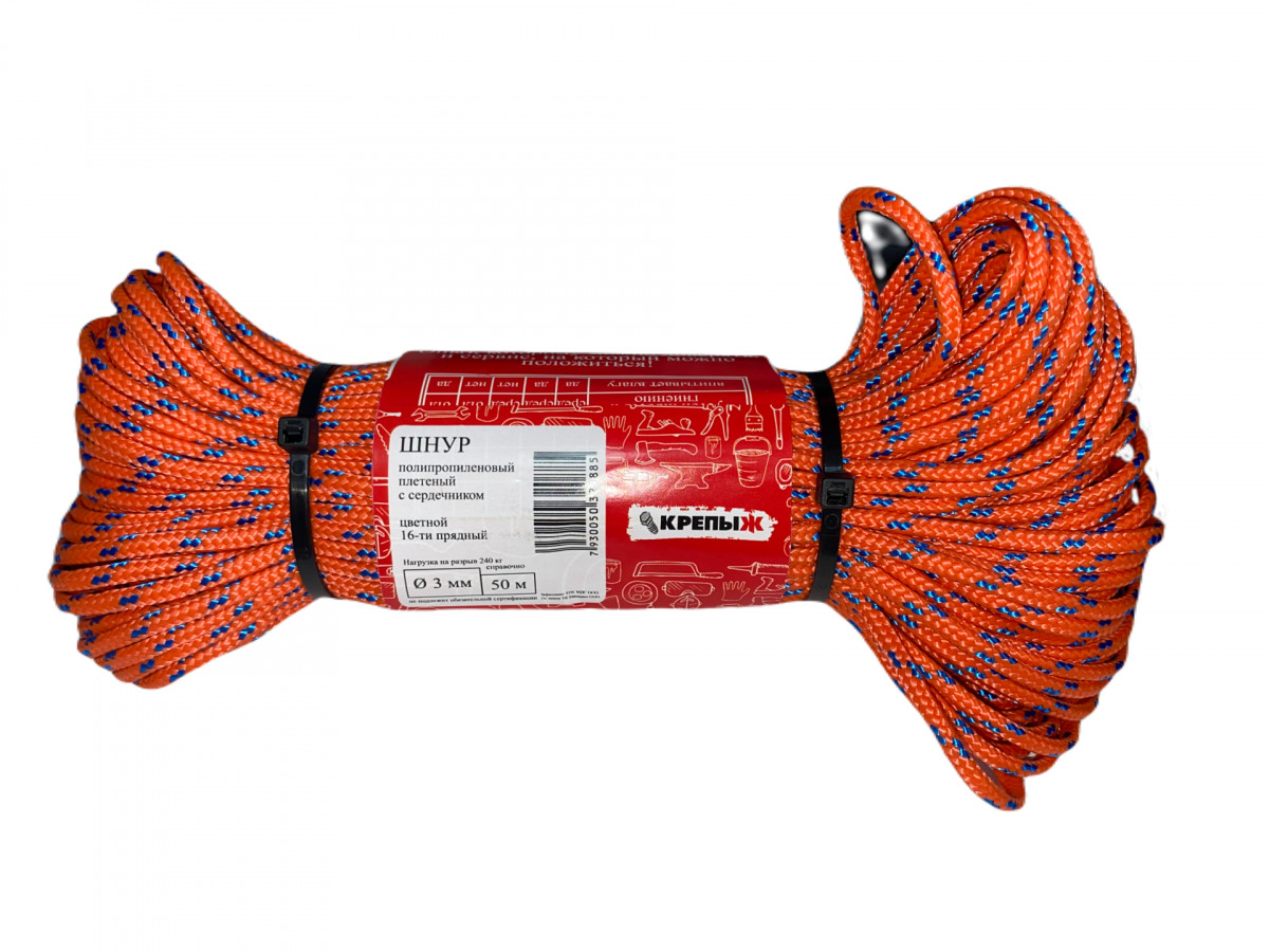 Шнур полипропиленовый плетёный 3 мм 16 прядный с сердечником цветной 50 метров Способ применения различные манипуляции с грузами (подъем, буксировка); упаковка, хозяйственные и вспомогательные нужды; производство спортивного инвентаря;