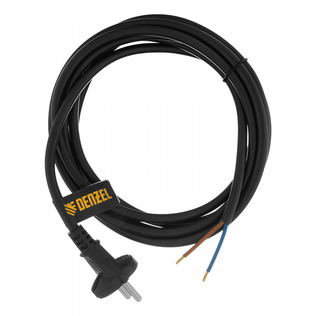 Шнур сетевой Energy Series, ПВС, 3 м, 2 x 1,5 мм, с неразборной вилкой, черный, Denzel