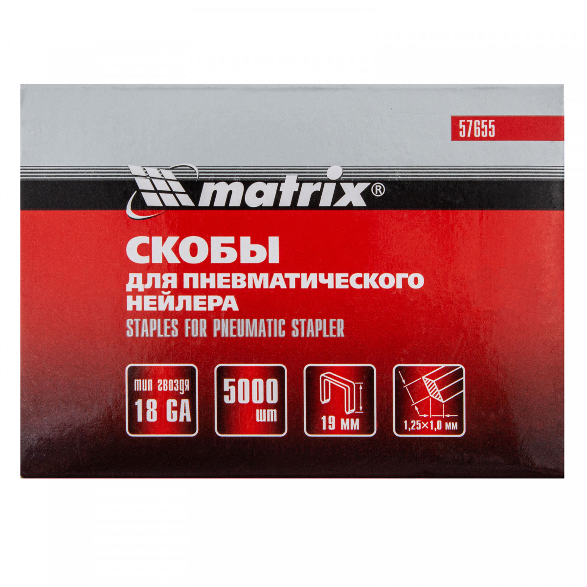 Скобы для пневматического степлера 18GA, 1.25 х 1 мм длина 19 мм, ширина 5,7 мм, 5000 шт Matrix