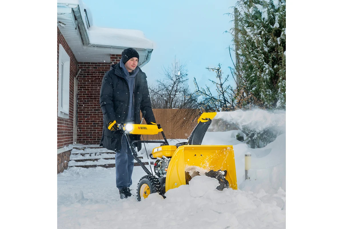 Бензиновая снегоуборочная машина Denzel SBM 610 97653 - оптимальный выбор для коммунальных служб и организаций. Предназначена для уборки территорий загородных домов, коттеджей, подъездных дорог и улиц СНТ, парковок и городских дворовых территорий. Ресурсный двигатель объемом 212 куб.см с высоким крутящим моментом, кожух шнека шириной 610 мм и высотой захвата 540 мм обеспечивают эффективную уборку больших сугробов с ледяной коркой. Снегоуборщик относится к самоходному типу с двухступенчатой системой забора снега. Яркая LED фара облегчает работу в темное время суток. Благодаря шинам с глубоким протектором исключается пробуксовка на обледенелой дороге.