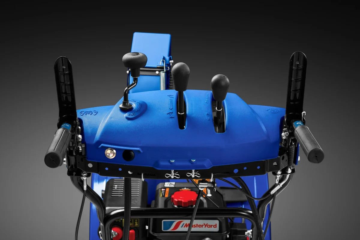 Снегоуборщик MasterYard MV 8524 RE - это бензиновая самоходная колесная модель рабочей шириной 62 см. Снегоуборочная машина оснащена электростартером, двойной яркой фарой, системой быстрого разворота желоба выброса