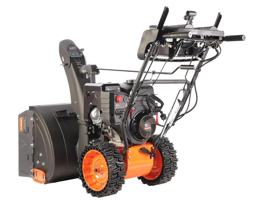 Электрический стартер и мощный двигатель обеспечивают легкий запуск и высокую производительность в сложных условиях снегопада.