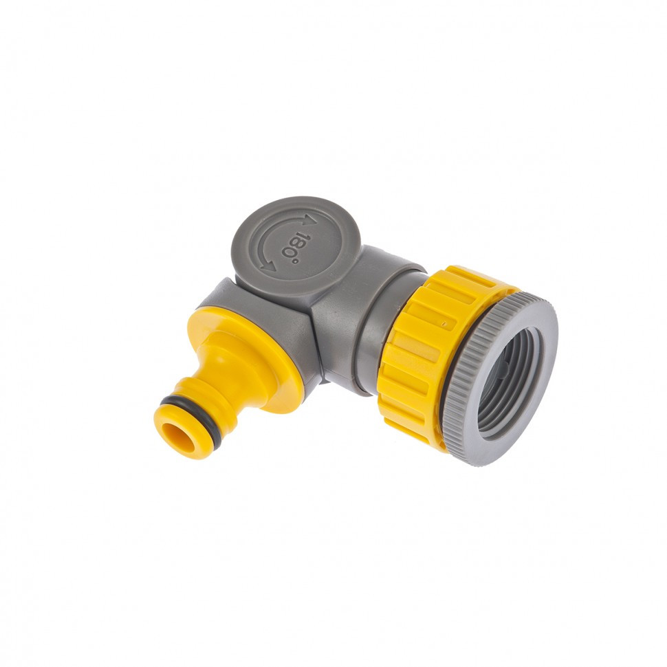 - Шарнирный механизм — соединитель поворачивается на 180 градусов, поэтому шланг не деформируется при изменении направления полива.