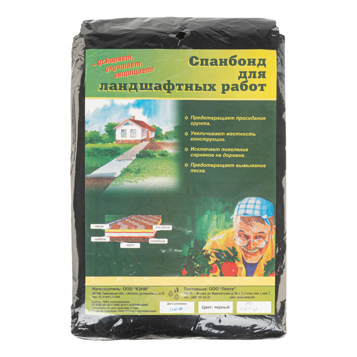 Черный цвет спанбонда задерживает ультрафиолет, предотвращая рост сорняков.