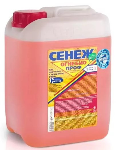 Комплексная огнебиозащита древесины с усиленным огнезащитным действием (I гр., II гр.) и контрольным тонированием. Средство Сенеж Огенибио Проф предназначено для комплексной защиты древесины от горения, воспламенения, распространения пламени, гниения, плесени, синевы и насекомых-древоточцев внутри помещений и на открытом воздухе (под навесом) в условиях гигроскопического и конденсационного увлажнения без контакта с грунтом, воздействия атмосферных осадков, почвенной влаги. Суммарный расход для обеспечения огнезащитных свойств по I группе (трудногорючая древесина) — не менее 600 г/м2 (1,6-1,7 м2/кг); расход для обеспечения огнезащитных свойств по II группе (трудновоспламеняемая древесина) и биозащиты – не менее 300 г/м2 (3,0-3,5 м2/кг).