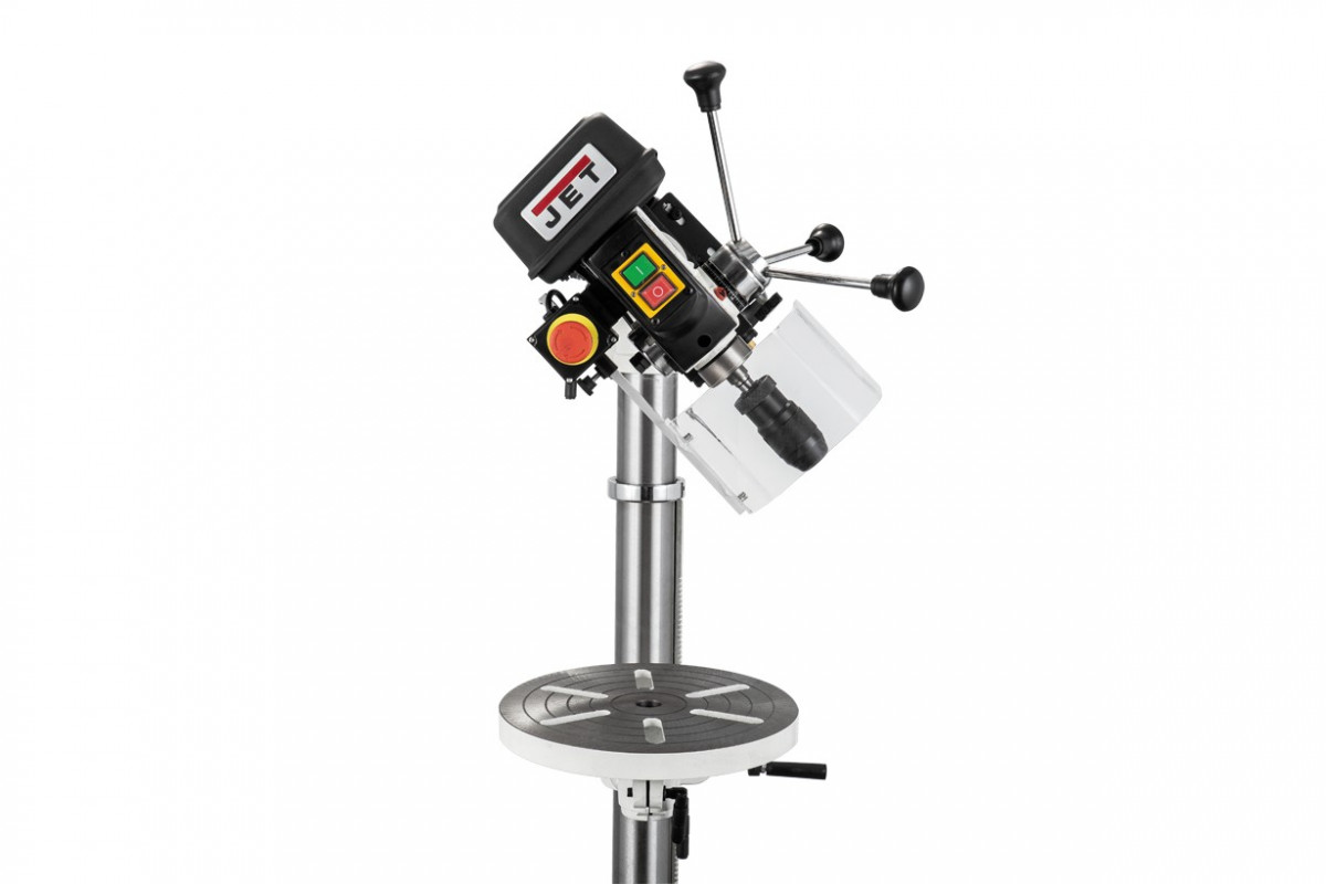 Сверлильный станок JET JDR-34 используется в бытовых целях. Мощный двигатель с выходной мощностью 350 Вт способен справиться даже с высокими нагрузками. Основное назначения станка – высверливание небольших аккуратных отверстий диаметром до 16 мм в древесине.