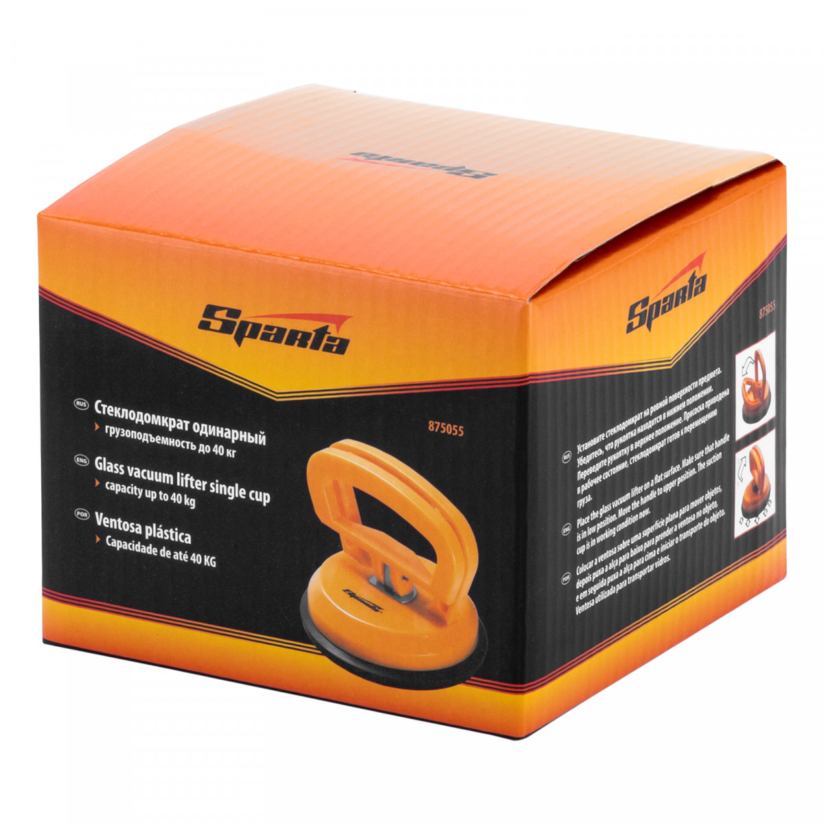 Одинарный стеклодомкрат Sparta 875055 служит для захвата, удержания и перемещения стекол, зеркал, кафельной плитки и других плоских гладких предметов весом до 40 кг. Имеет вакуумную присоску, которая после складывания рукоятки бережно прижимается к чистой сухой поверхности и прочно фиксируется на ней. Инструмент пригодится во время проведения ремонтных и отделочных работ.