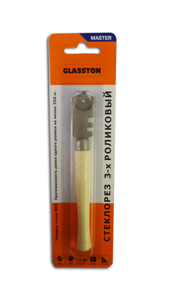 Режущие элементы из твердого сплава ВК3 обеспечивают долгий срок службы стеклореза.
