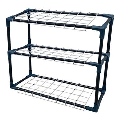 ПНД труба и металлические полки обеспечивают прочность и долговечность конструкции стеллажа.