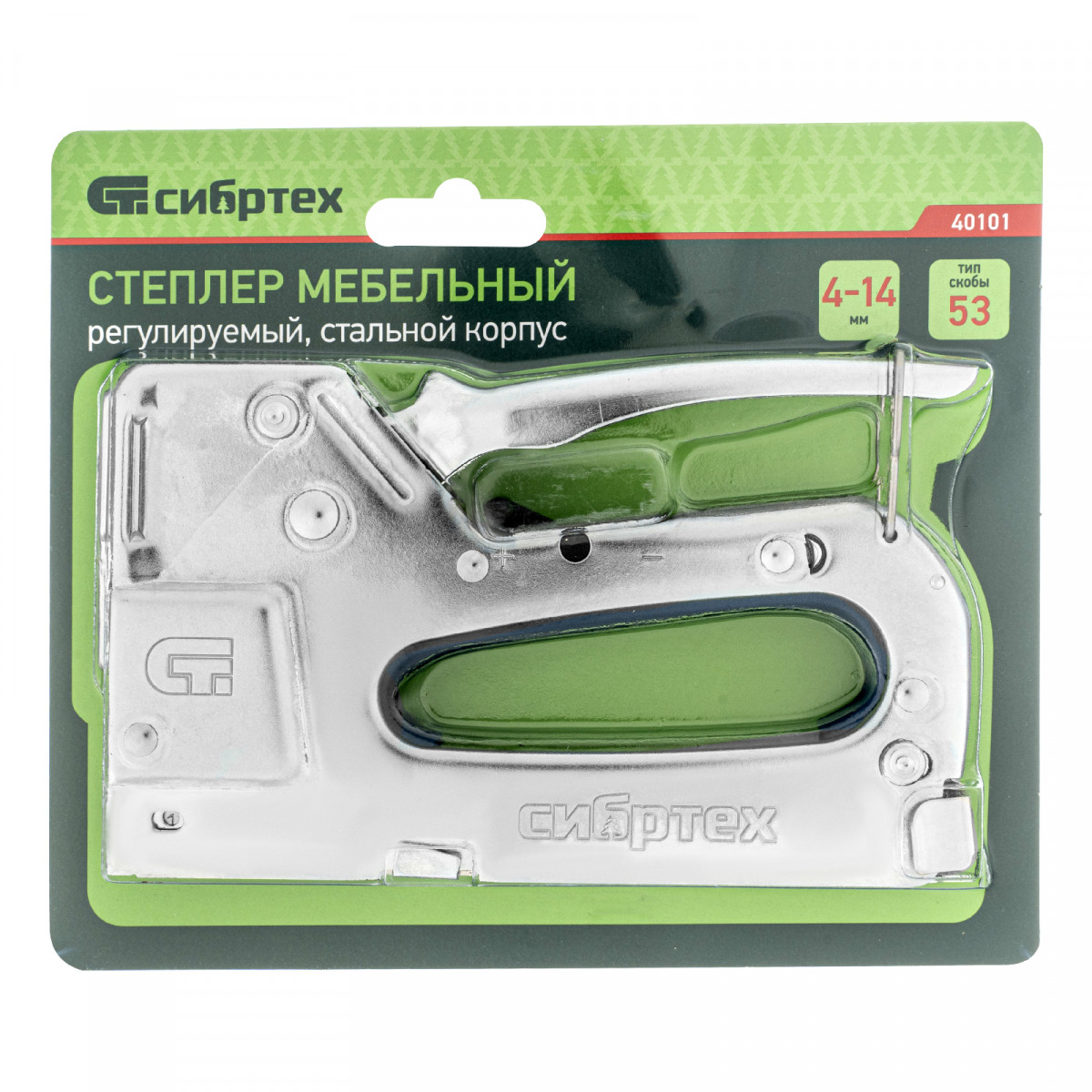 Степлер мебельный, металлический, регулируемый, тип скобы: 53, 4-14 мм Сибртех