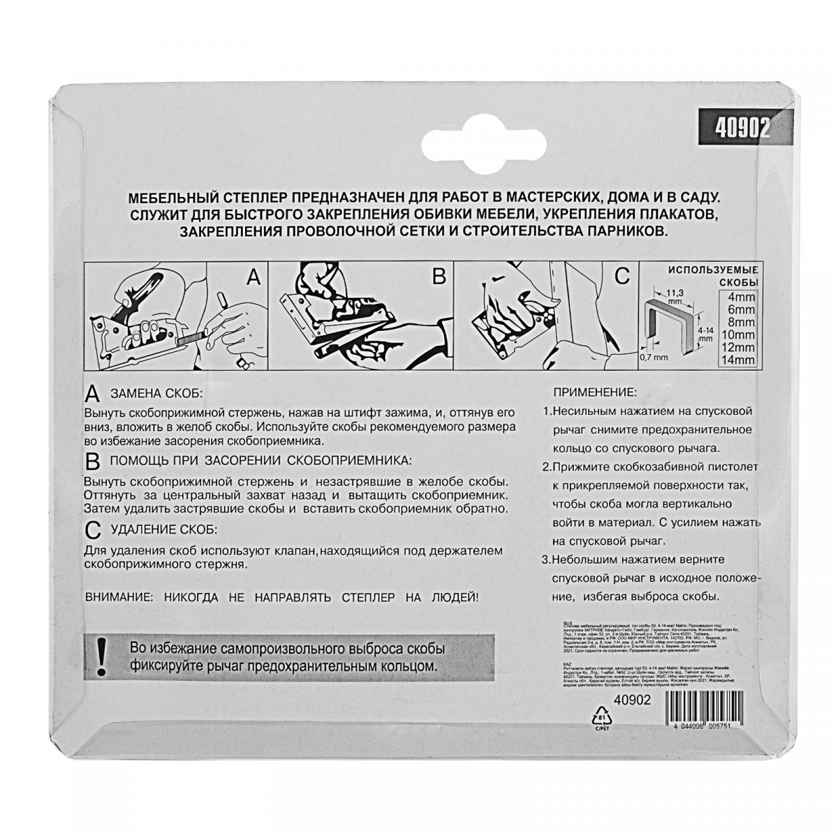 Степлер - 1 штСкобы - 50 шт