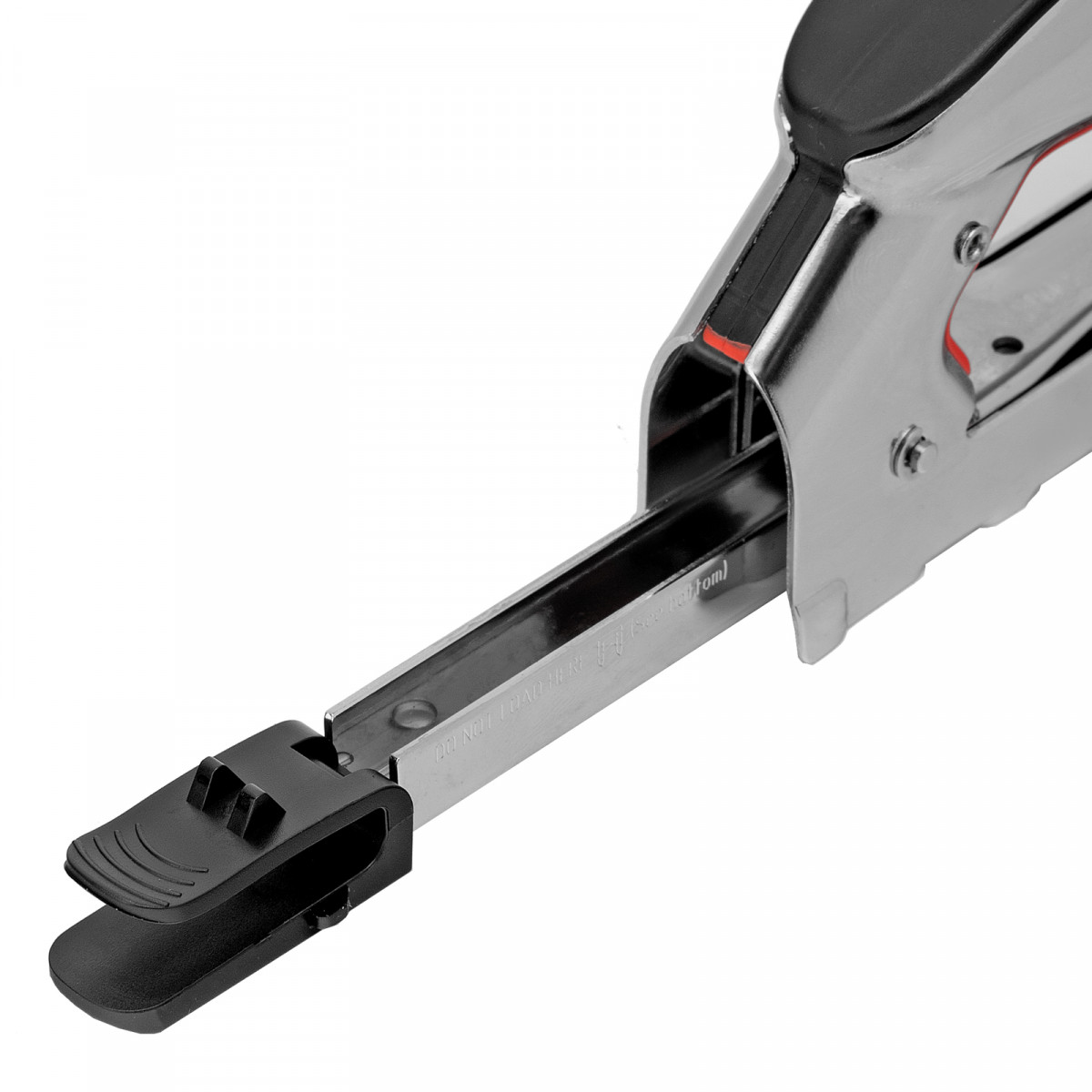 - Продуманная комплектация — степлер поставляется с крючком для подвешивания на ремень.