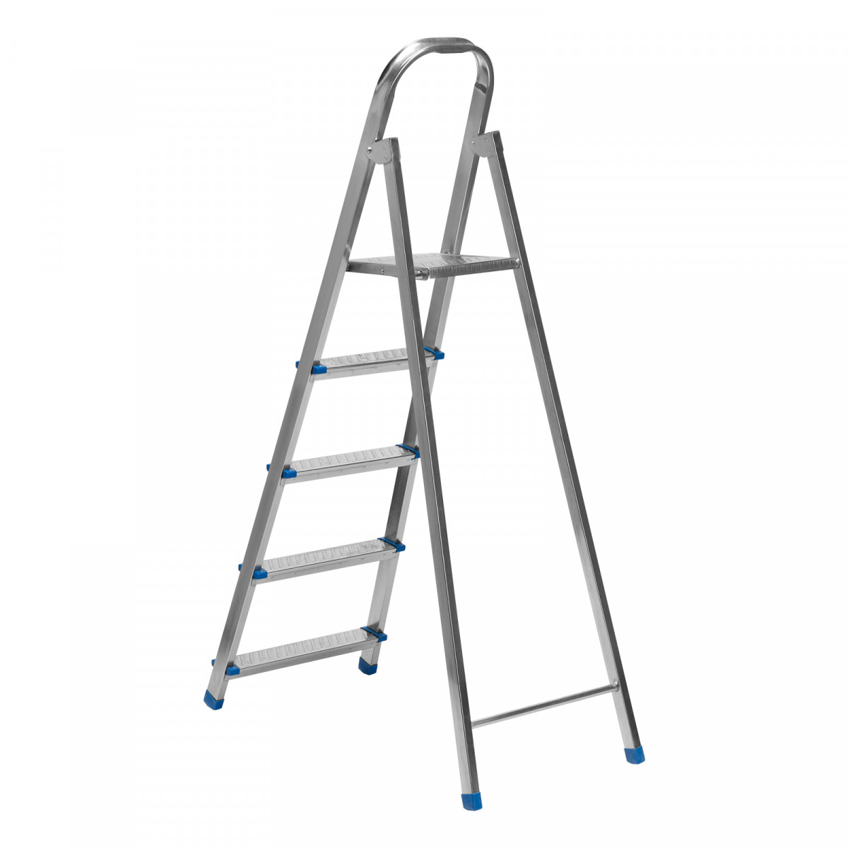 Стальная оцинкованная стремянка Сибртех 97837 с 5 ступенями позволяет повесить полку, картину или шкафчик, достать нужный предмет и решить другие задачи, для которых требуется доступ к предметам на высоте. Рама и ступени из стального профиля выдерживают вес до 120 кг. Расстояние от опорной поверхности до площадки составляет 99 см, при среднем росте пользователя 170 см рабочая высота лестницы — 299 см. Необходимо соблюдать технику безопасности: размещать стремянку только на ровной плоскости и не использовать ее для работы с дрелью, шуруповертом и другим электроинструментом.