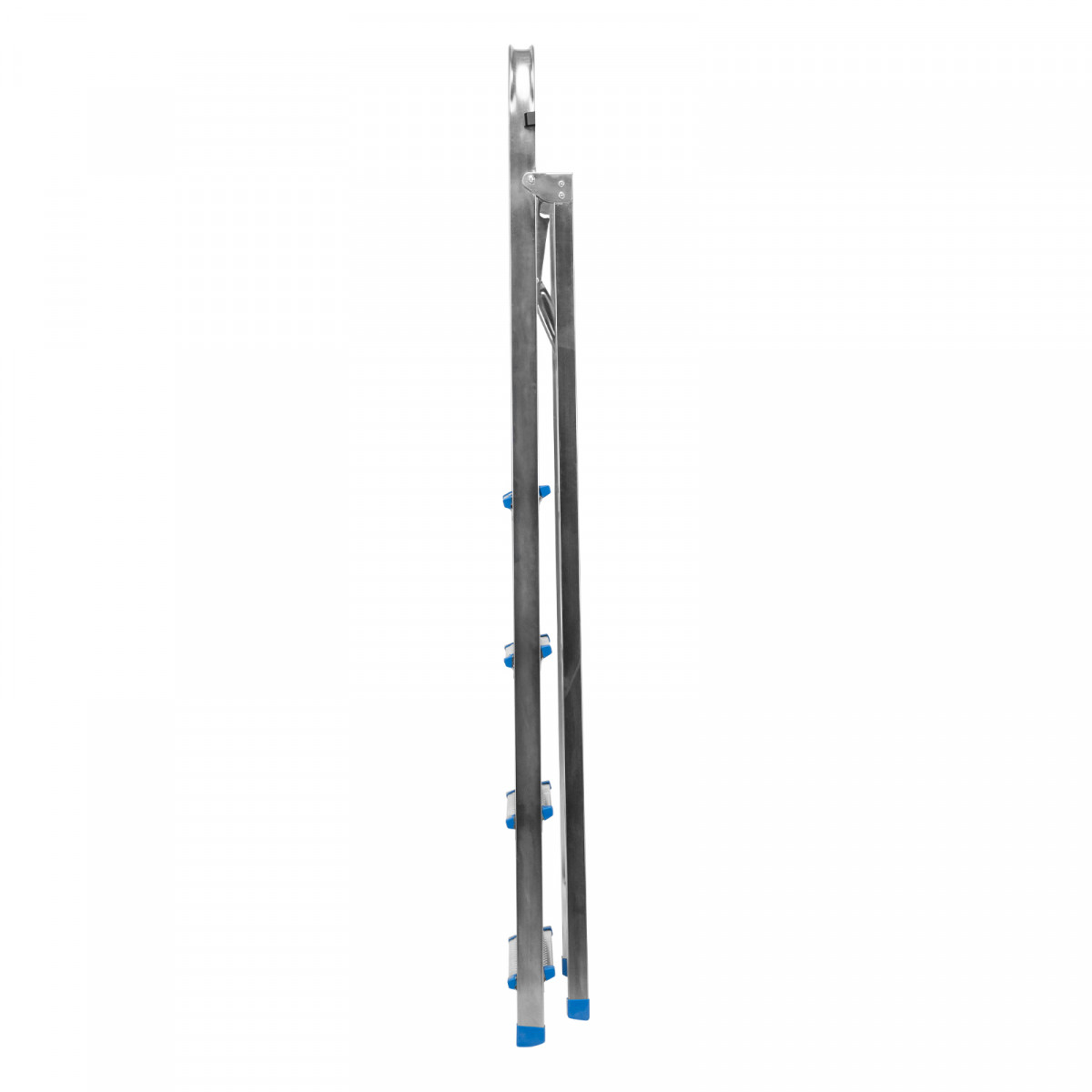 - Компактность и малый вес — лестница весит 5,1 кг, размеры в сложенном состоянии составляют 1520 х 445 х 105 мм, что удобно для хранения и транспортировки.