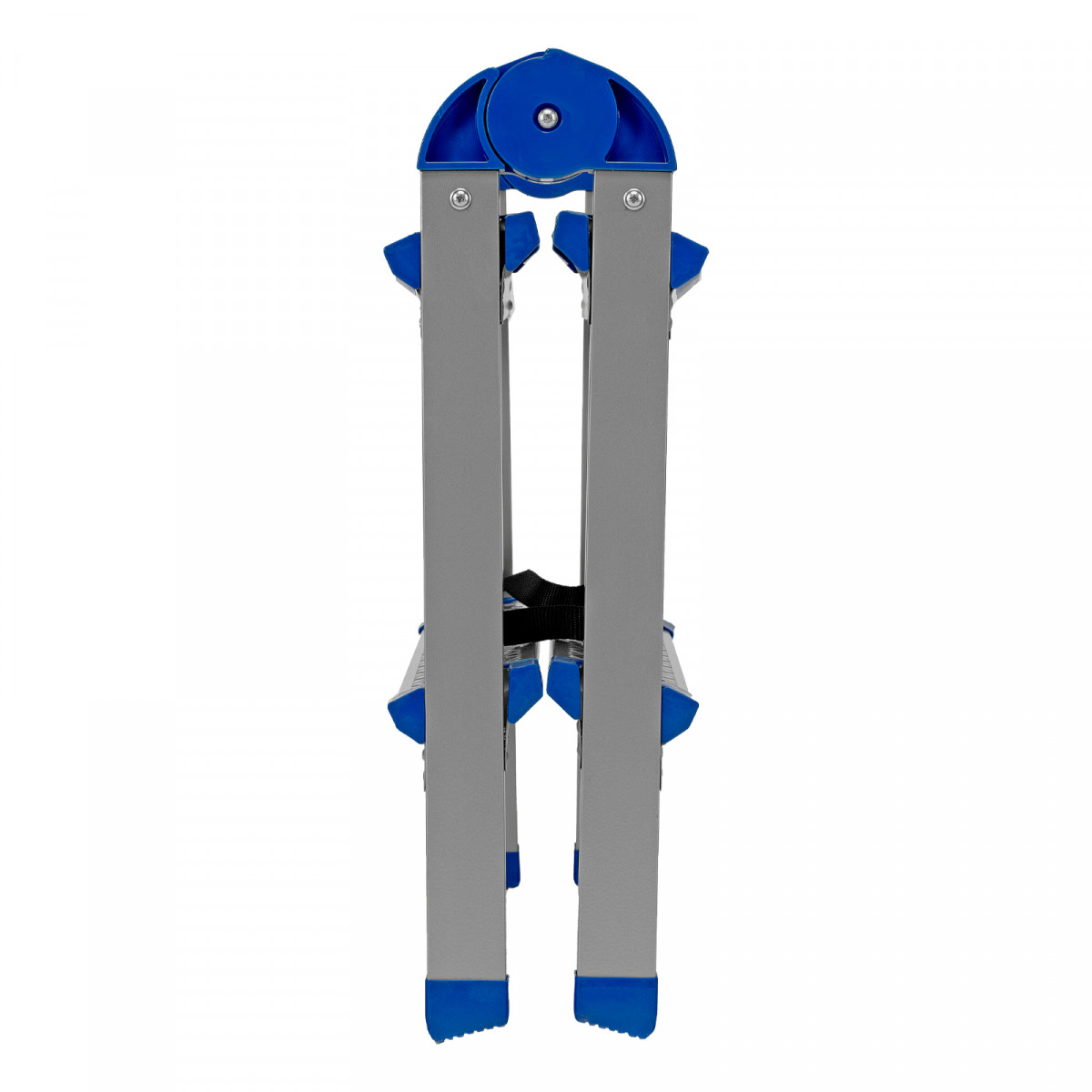 - Удобная транспортировка — стремянка весом 2,6 кг легко складывается, ее размеры в сложенном состоянии 500 х 410 х 160 мм.