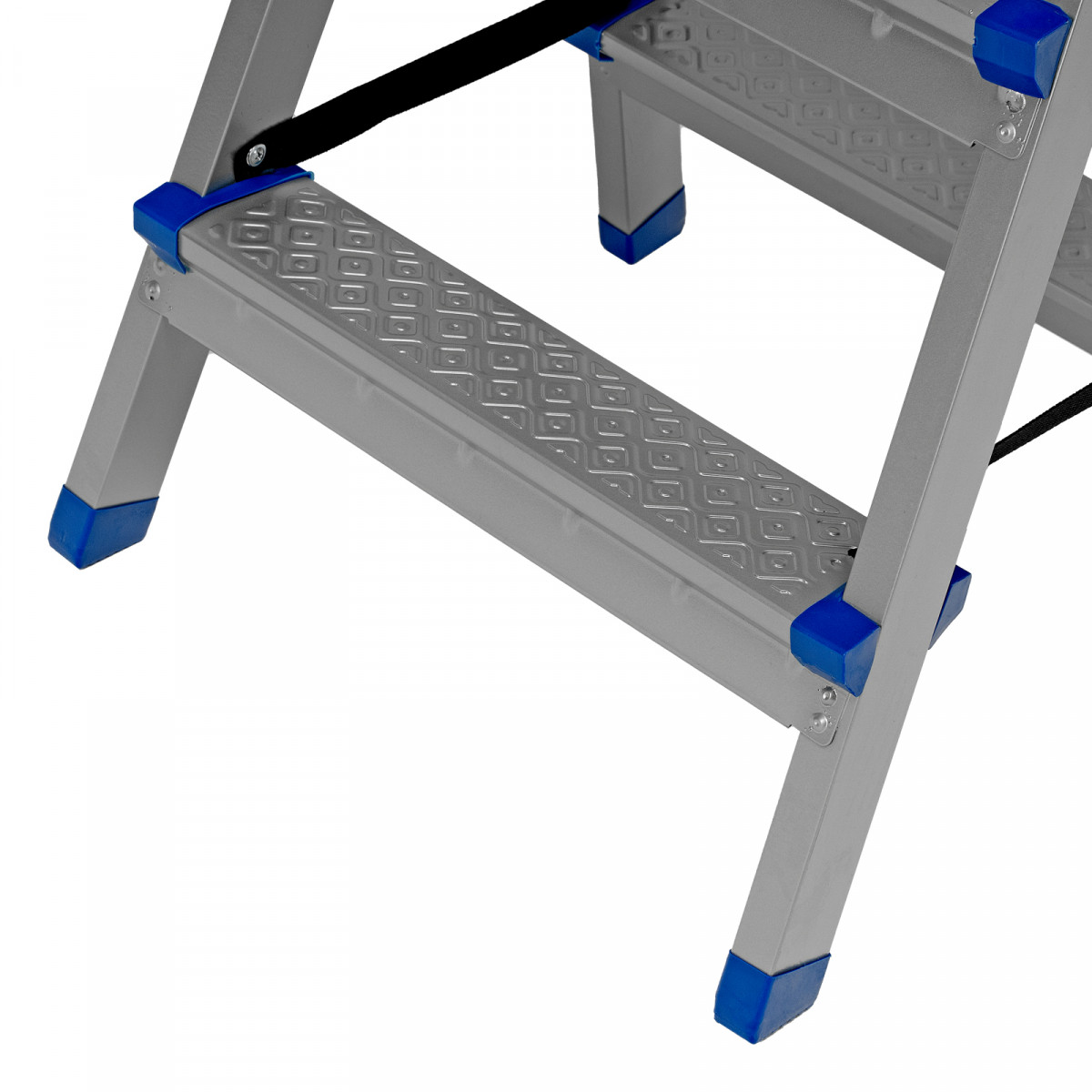 - Безопасность пользователя — на рифленых широких ступенях ступни не скользят, на углах имеются пластиковые наконечники для защиты от травм.