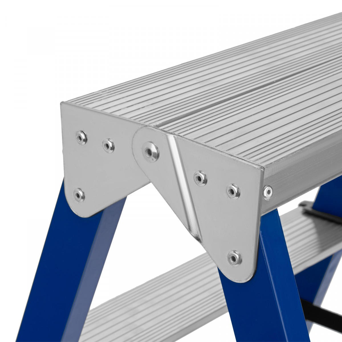 - Безопасность пользователя — широкие алюминиевые ступени не прогибаются, рифление на поверхности не дает поскользнуться.