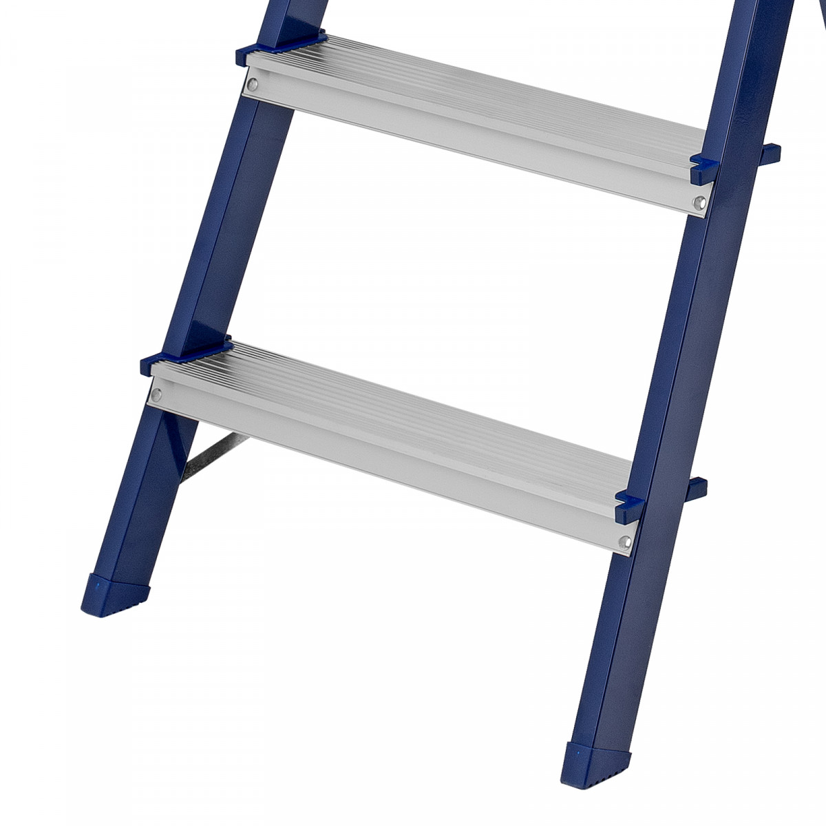 - Пластиковые заглушки на опорах — стремянка не скользит и не царапает напольное покрытие.