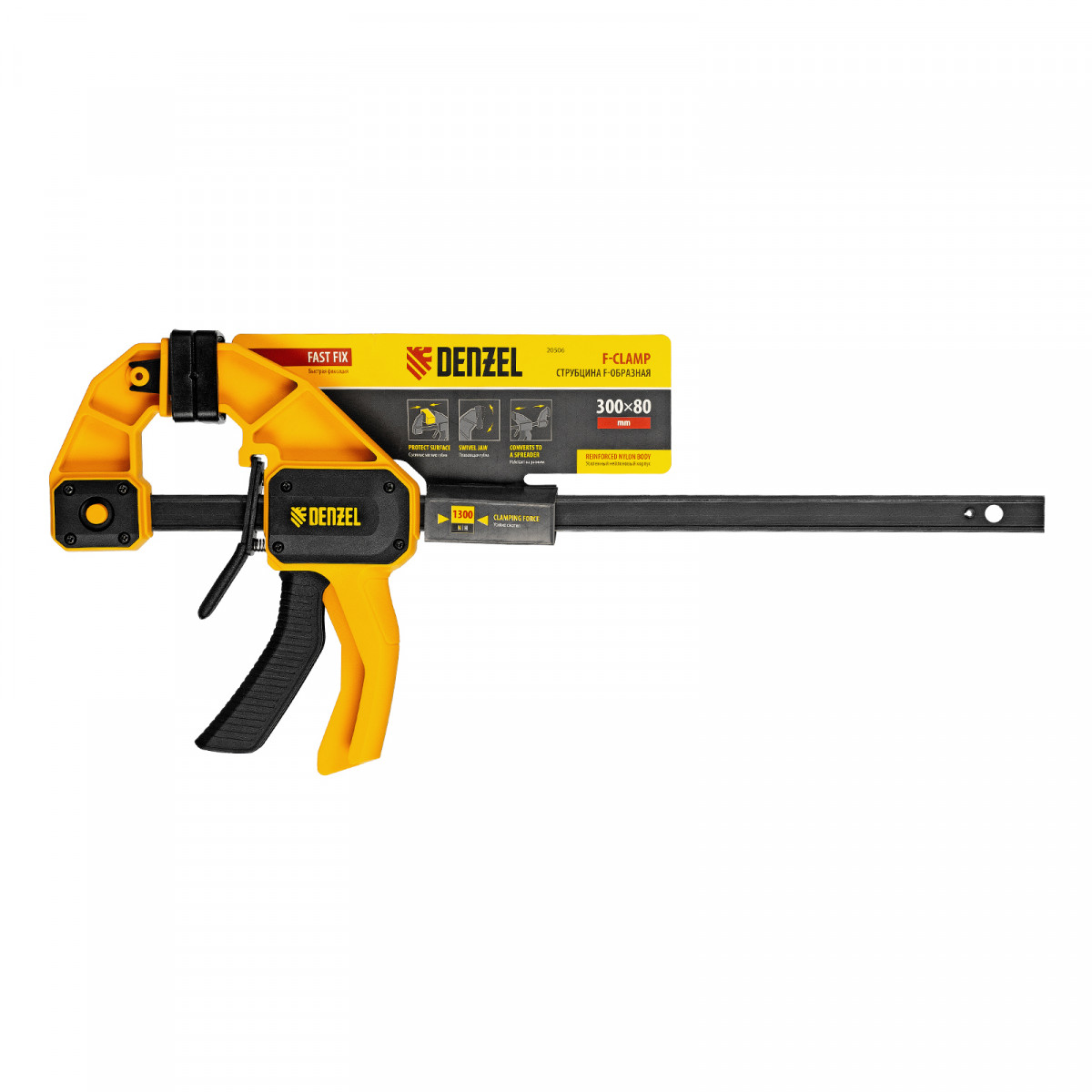 Струбцина F-образная, быстрозажимная, 300 х 80 мм, усиленный нейлоновый корпус Denzel