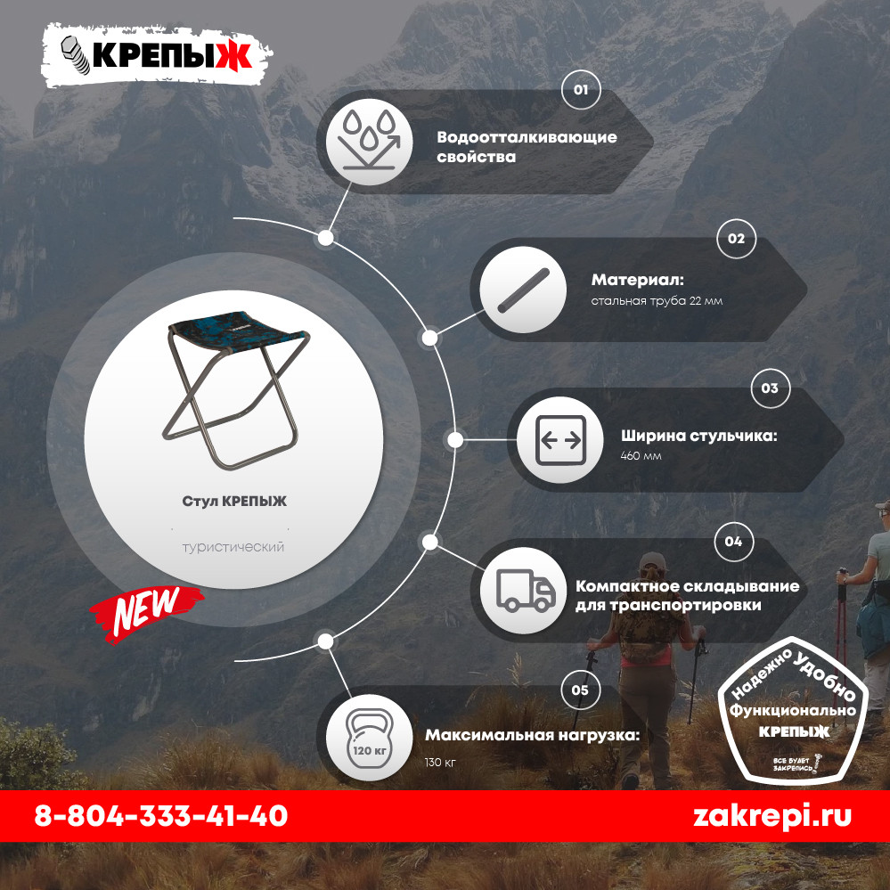 Стул туристический K-СР-450.22-SH труба D 22мм КРЕПЫЖ