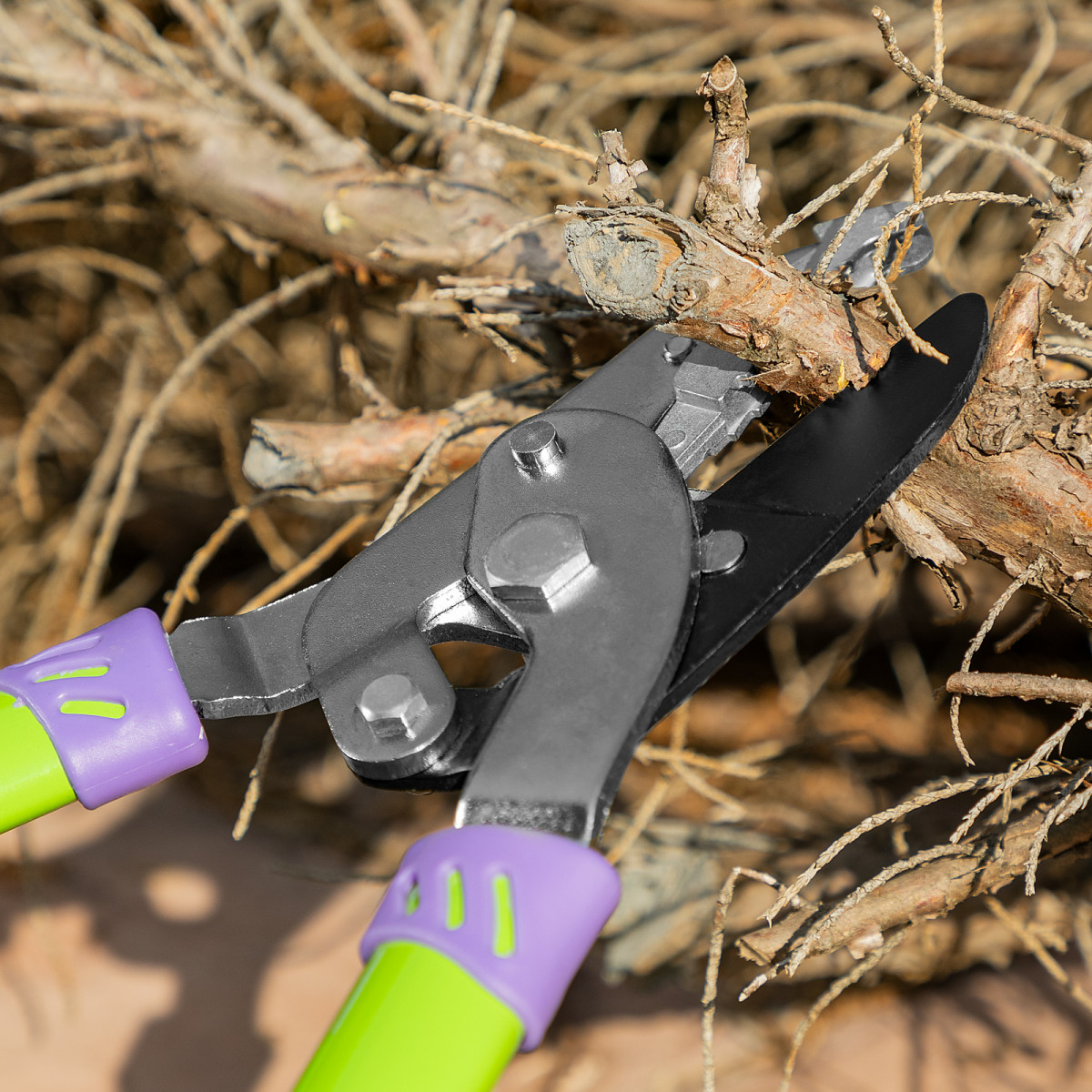 - Удобная работа — благодаря рифленой поверхности наковальни сучкорез надежно удерживает ветку во время обрезки.