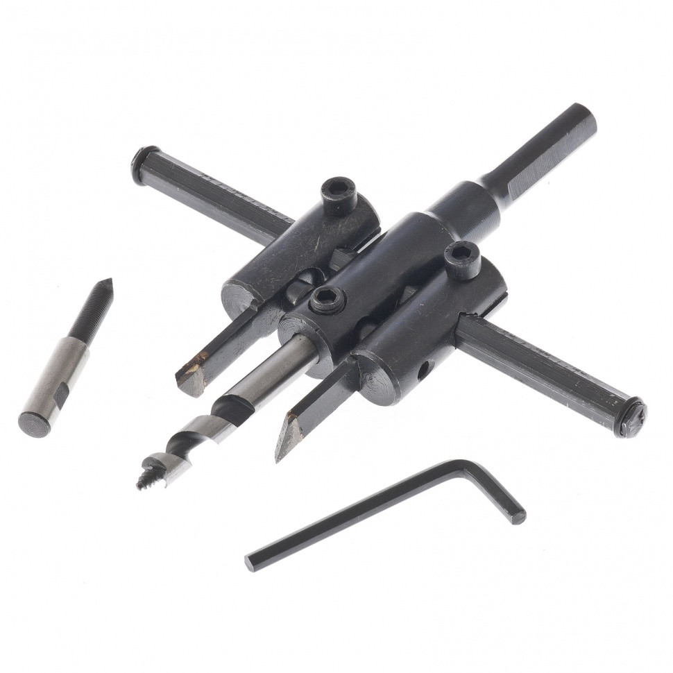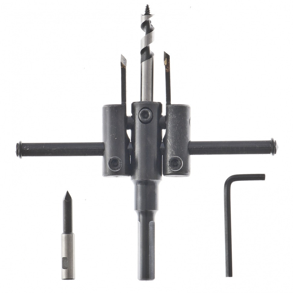 • Сверление отверстий разного диаметра — с помощью шестигранного ключа можно быстро регулировать положение резцов.
